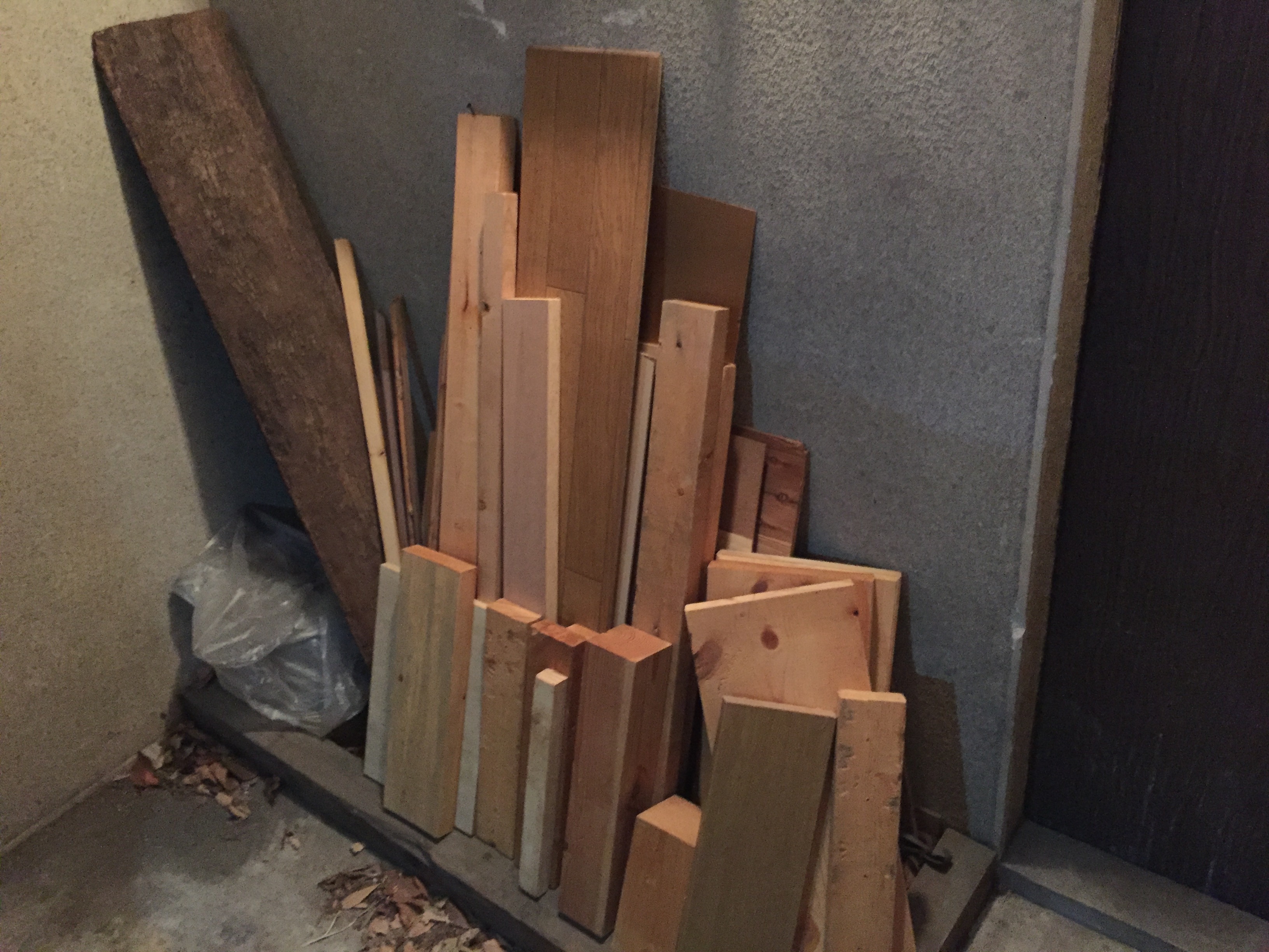DIYなどの端材でしょうか種類様々、頂いた端材がこちらです。