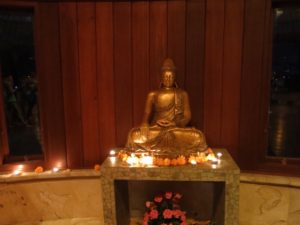 だんだん暗くなる谷、自然の音と熱気を感じながら音を出す、ヨガの呼吸を感じる。