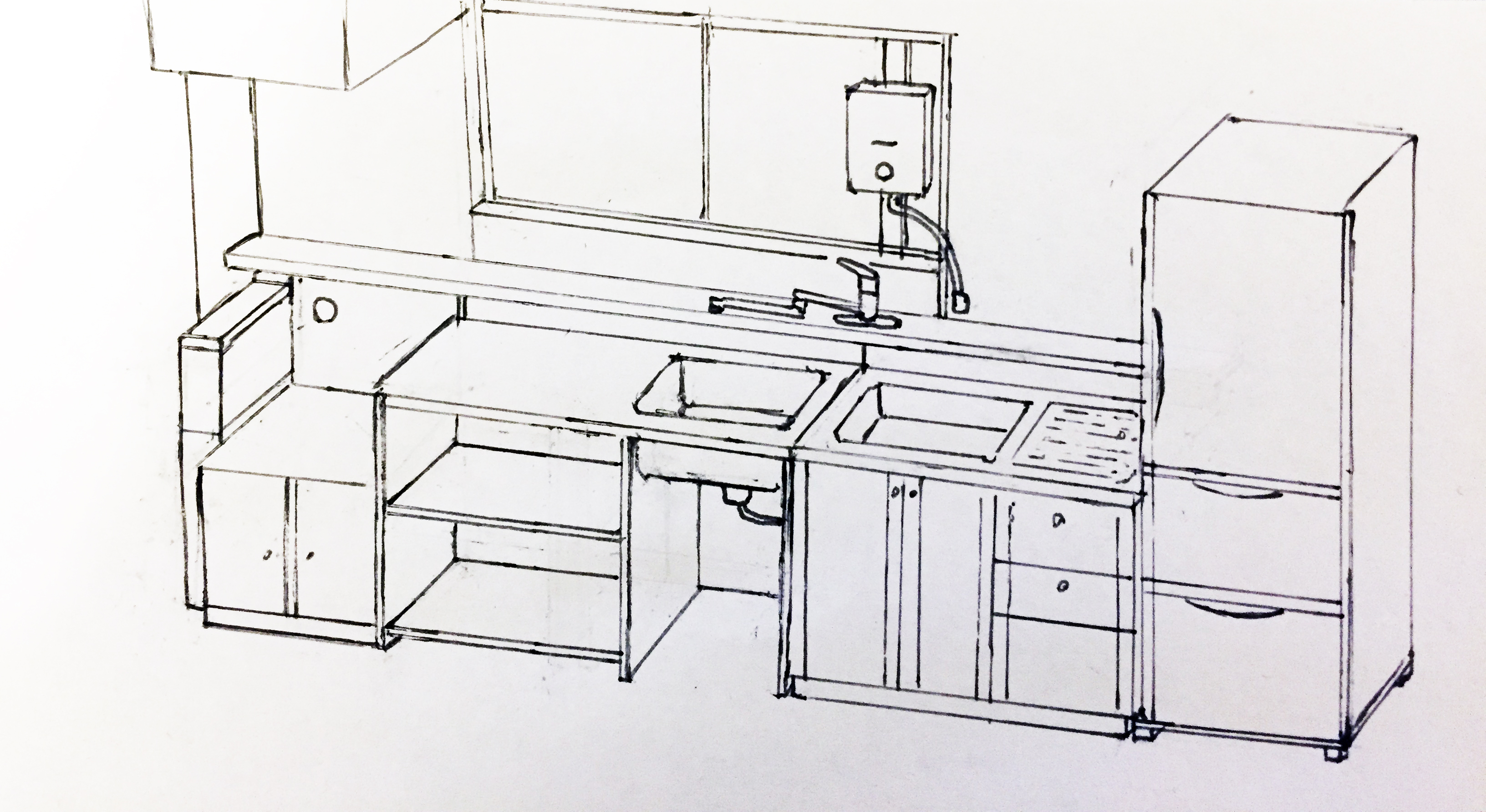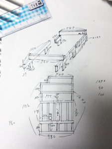 この日は主に採寸と、キッチンのイメージを紙におこしました。
