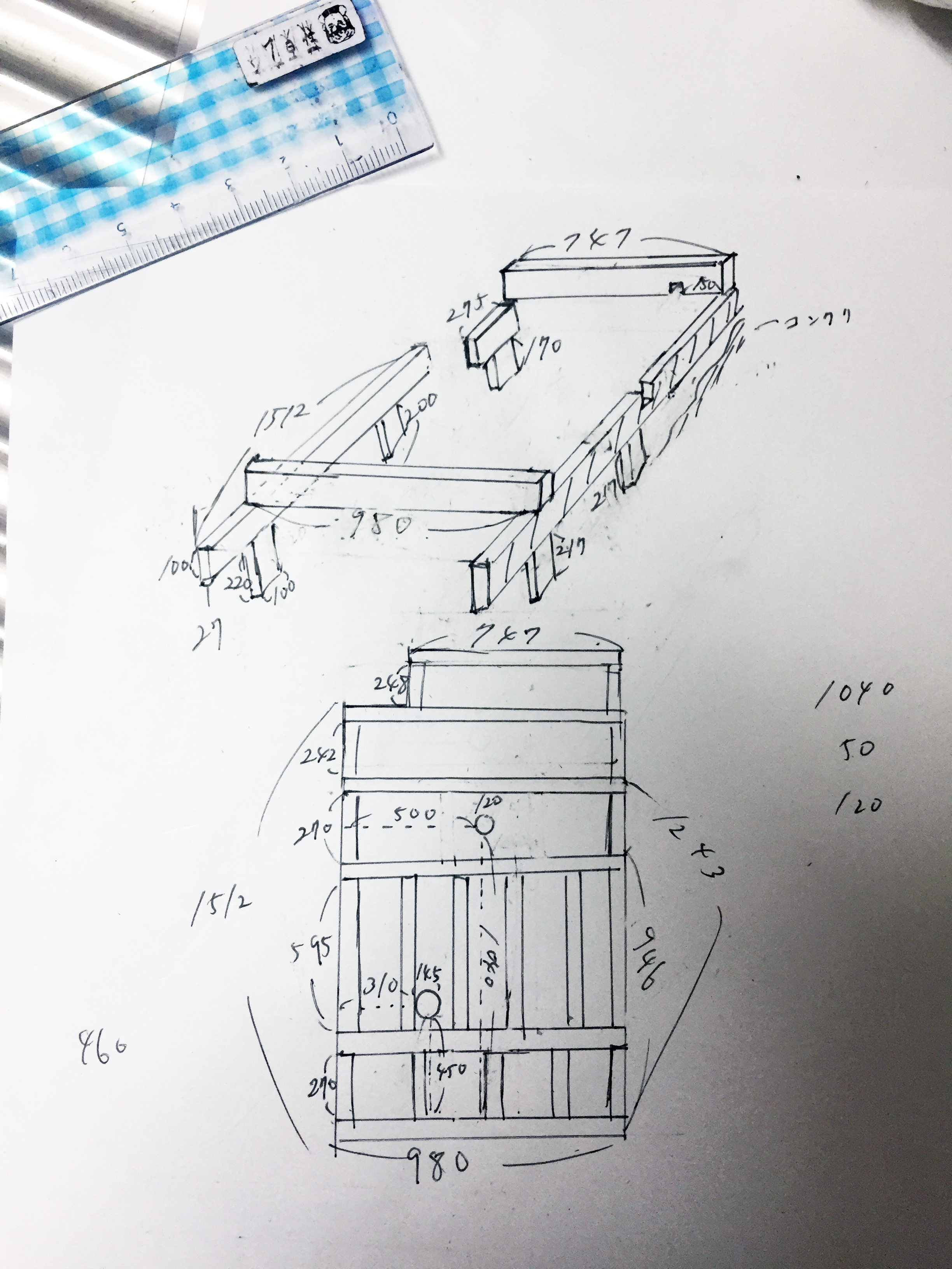 解体屋さんから格安購入したキッチン用品も組み込む為に細かく採寸。