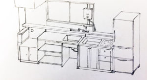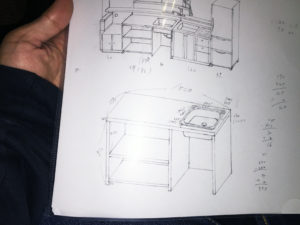 次なる目標は、スケッチをしたキッチン台を完成。