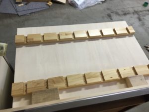 こちらは設計には予定にありませんでしたが、棚の高さを容易に調整できるように凹みが予め入った板を採用しました。