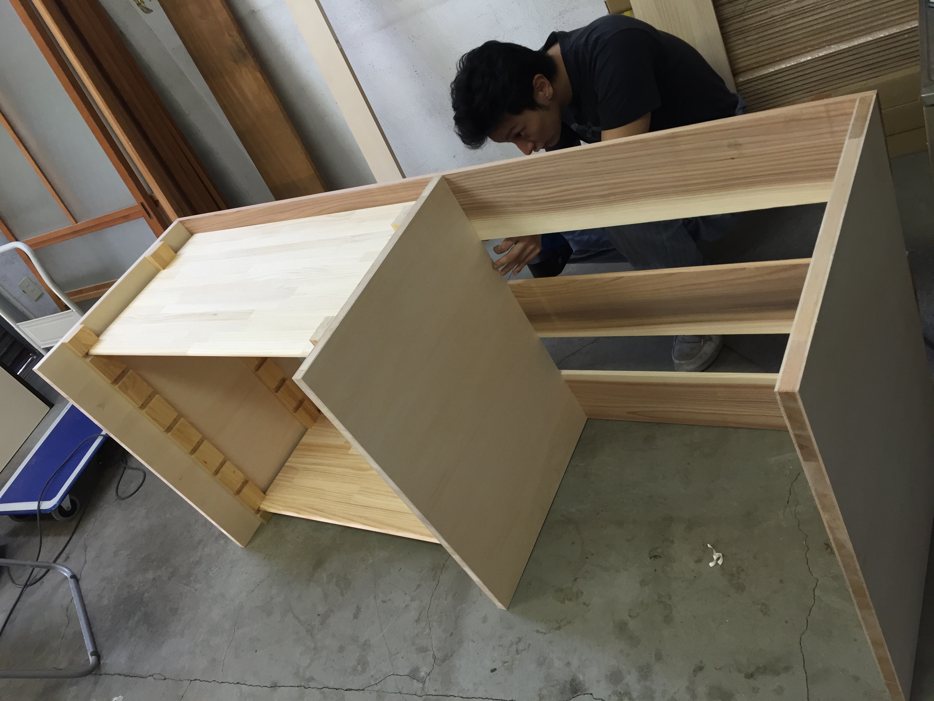 この時まだ上に乗せている天板は取り付けておらず乗せているだけです。