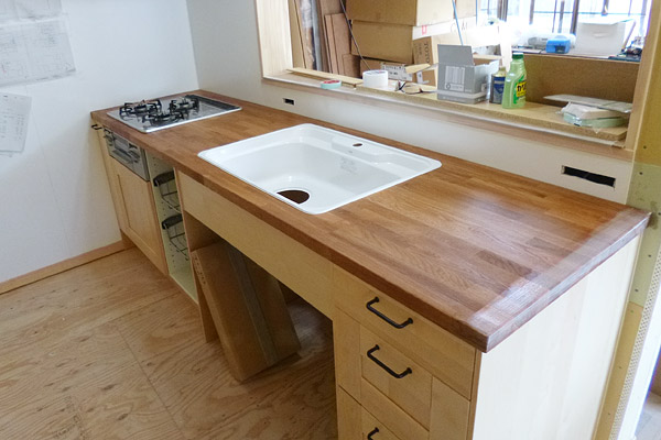 長く使えるキッチンにする為に水回りの木は可能な限り、しっかりとした木材を選びました。