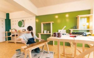 この日は壁を一ヵ所水色ペンキで塗る作業も行っていました!