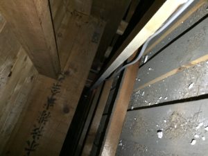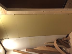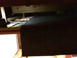奥行は床の幅と同じなのでその長さでカットし、天井裏へ敷きました。