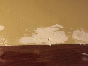 ここに木部補修用パテを使用しネジ穴を目立たないように埋めていきます。
