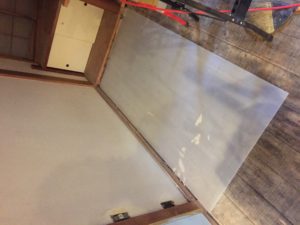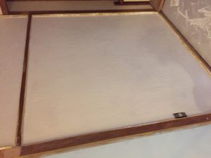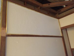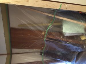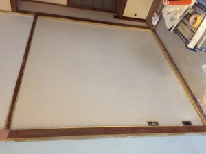床の間は資材置き場だったので、資材に粉塵が被らないよう養生。