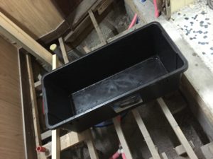 大工さんにコンクリートで埋めてもらった面に合わせてグラインダーで削っていきました!