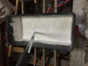 シーラーがある程度乾燥したところでアーチ部分にも漆喰塗り!
