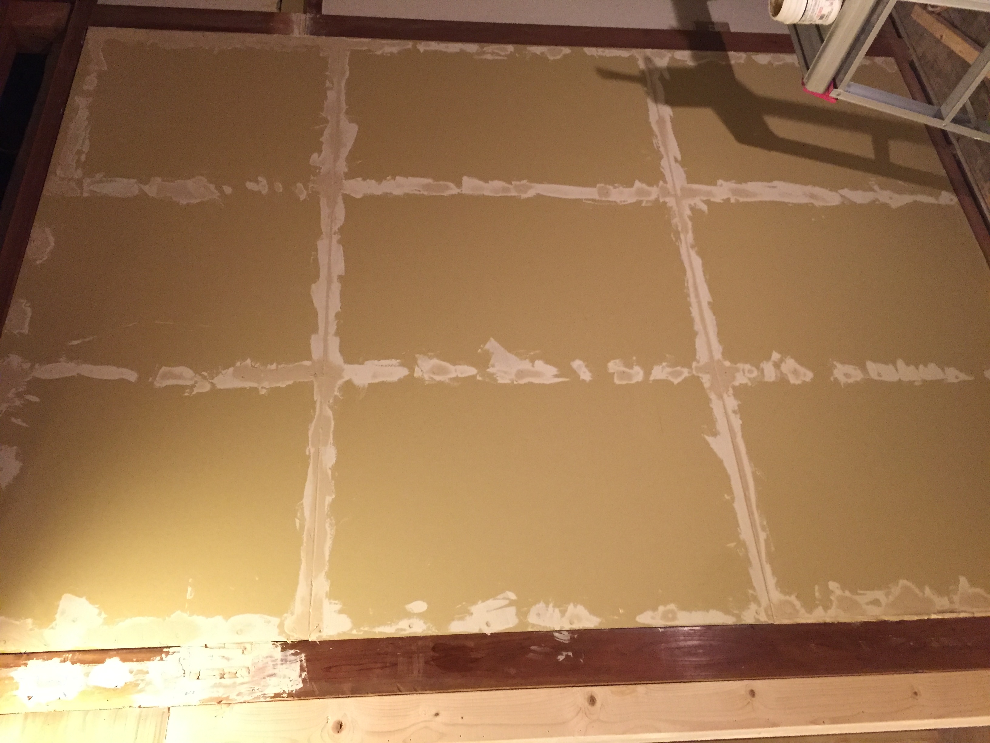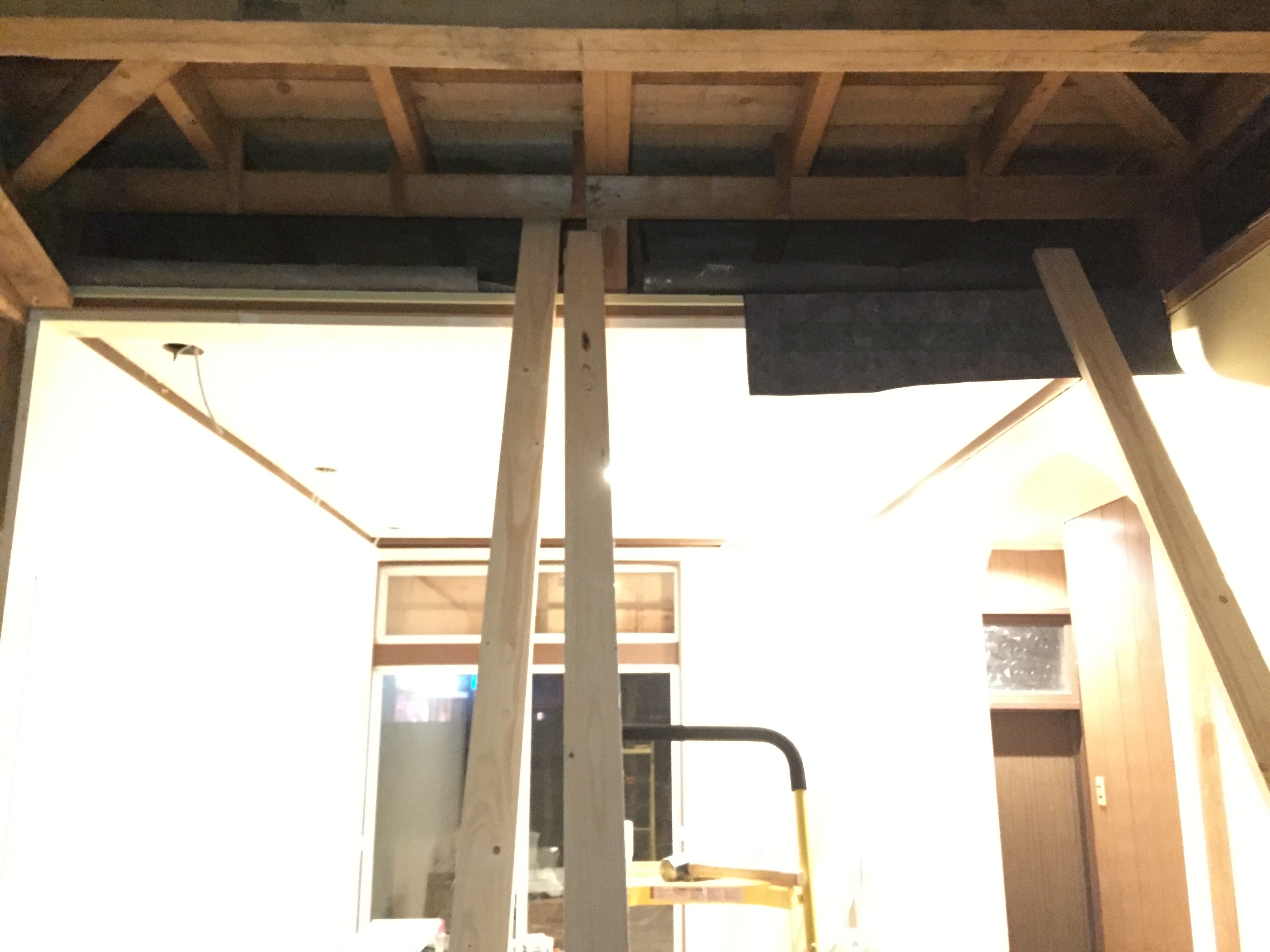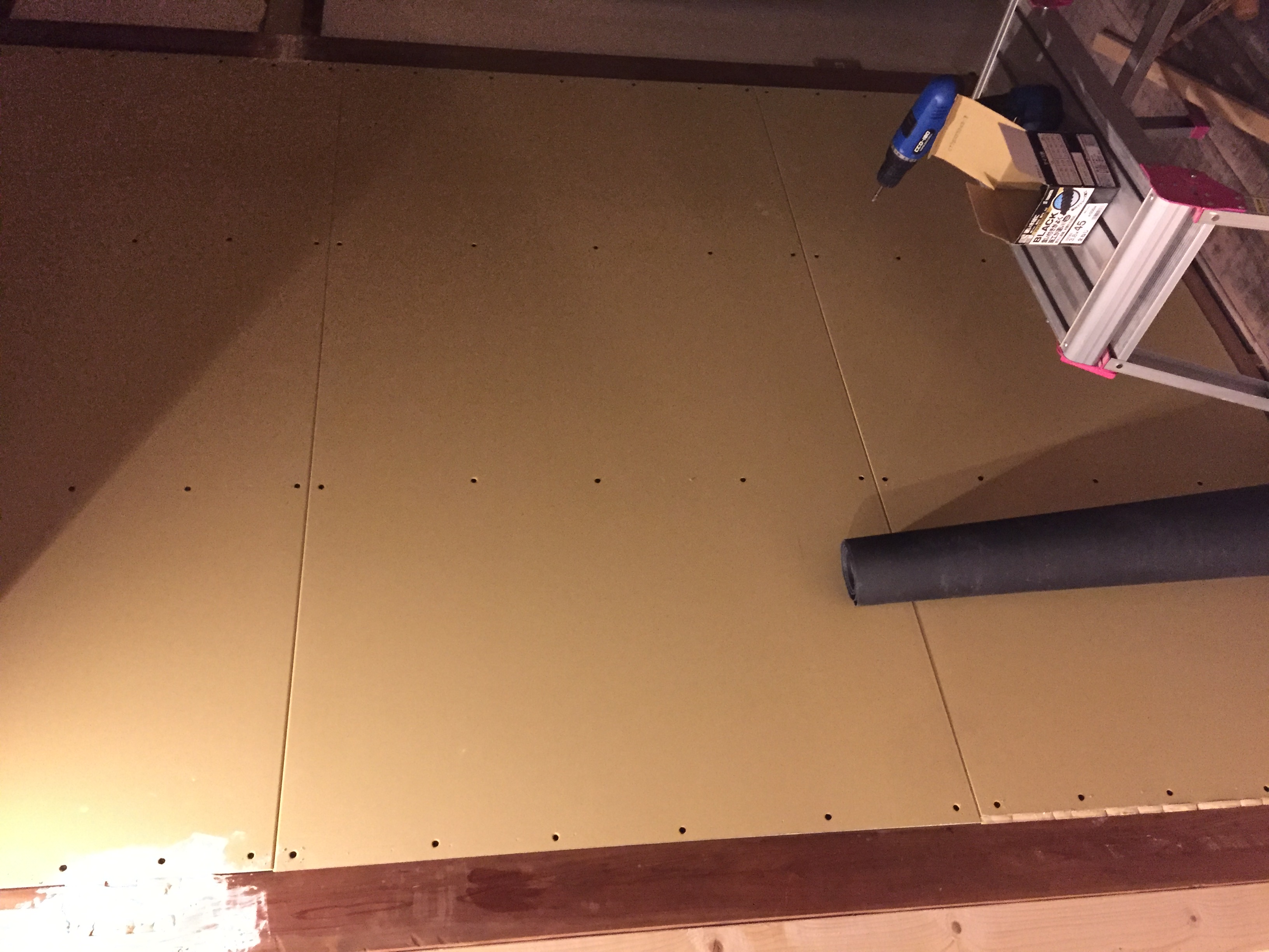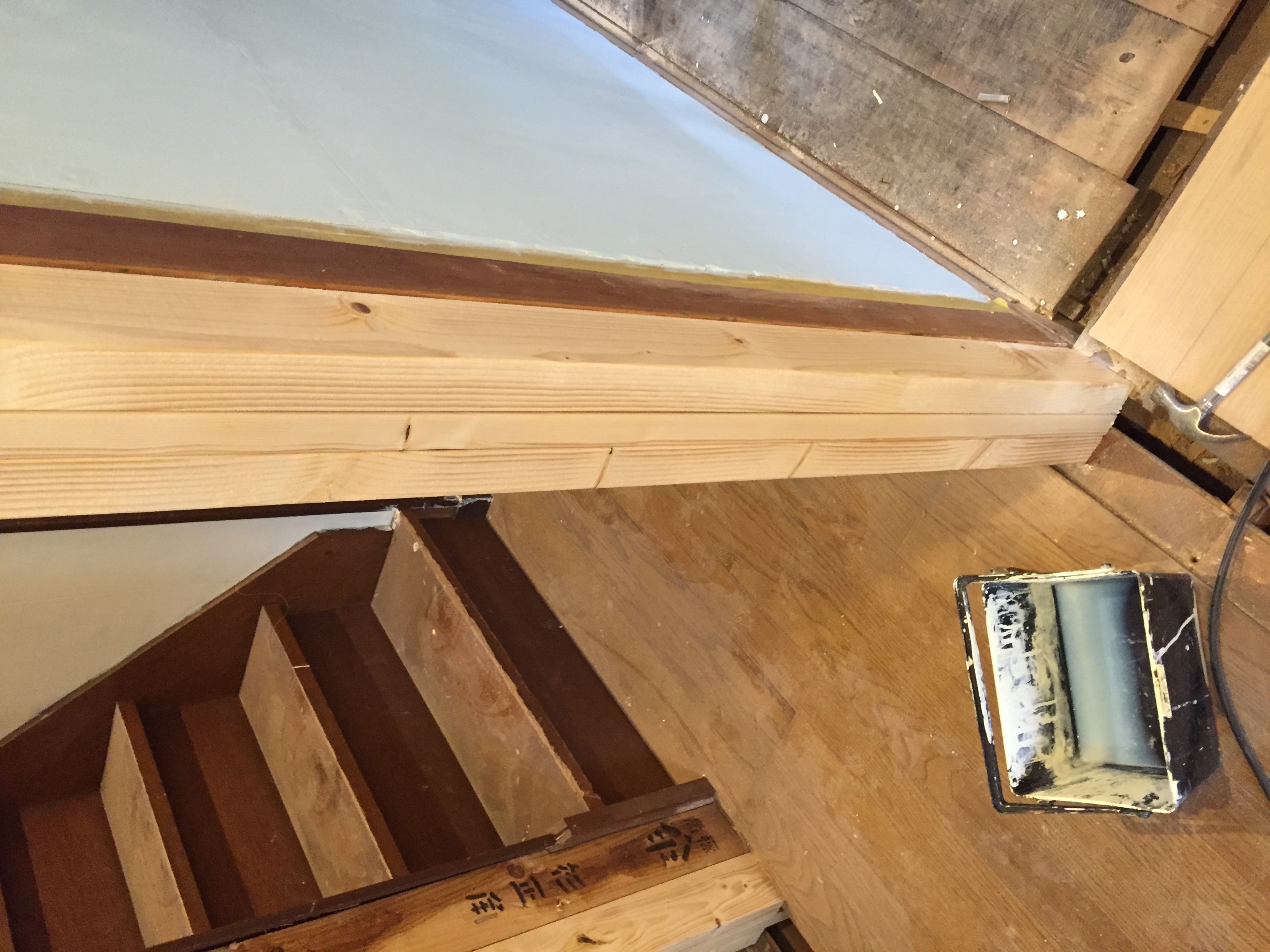 奥行は床の幅と同じなのでその長さでカットし、天井裏へ敷きました。