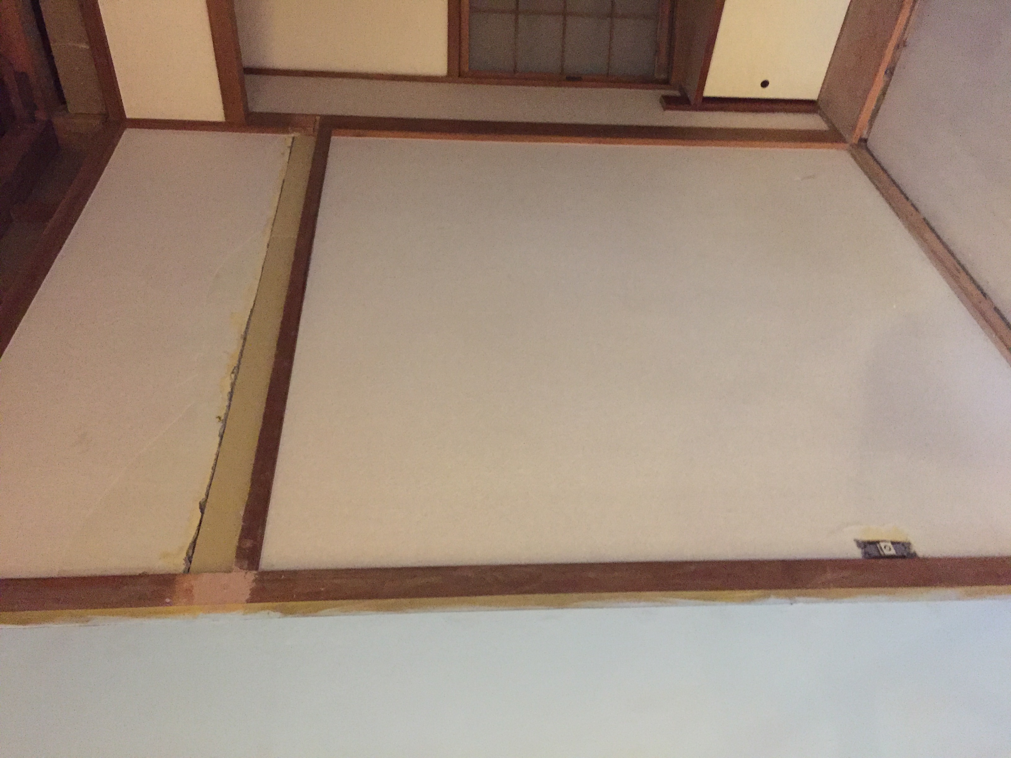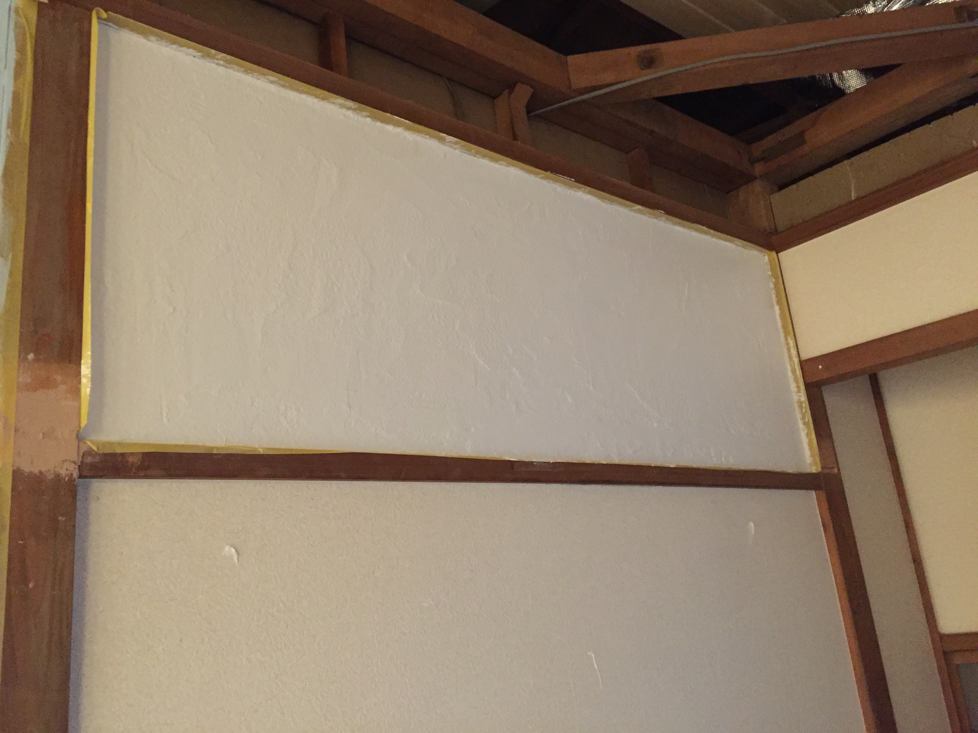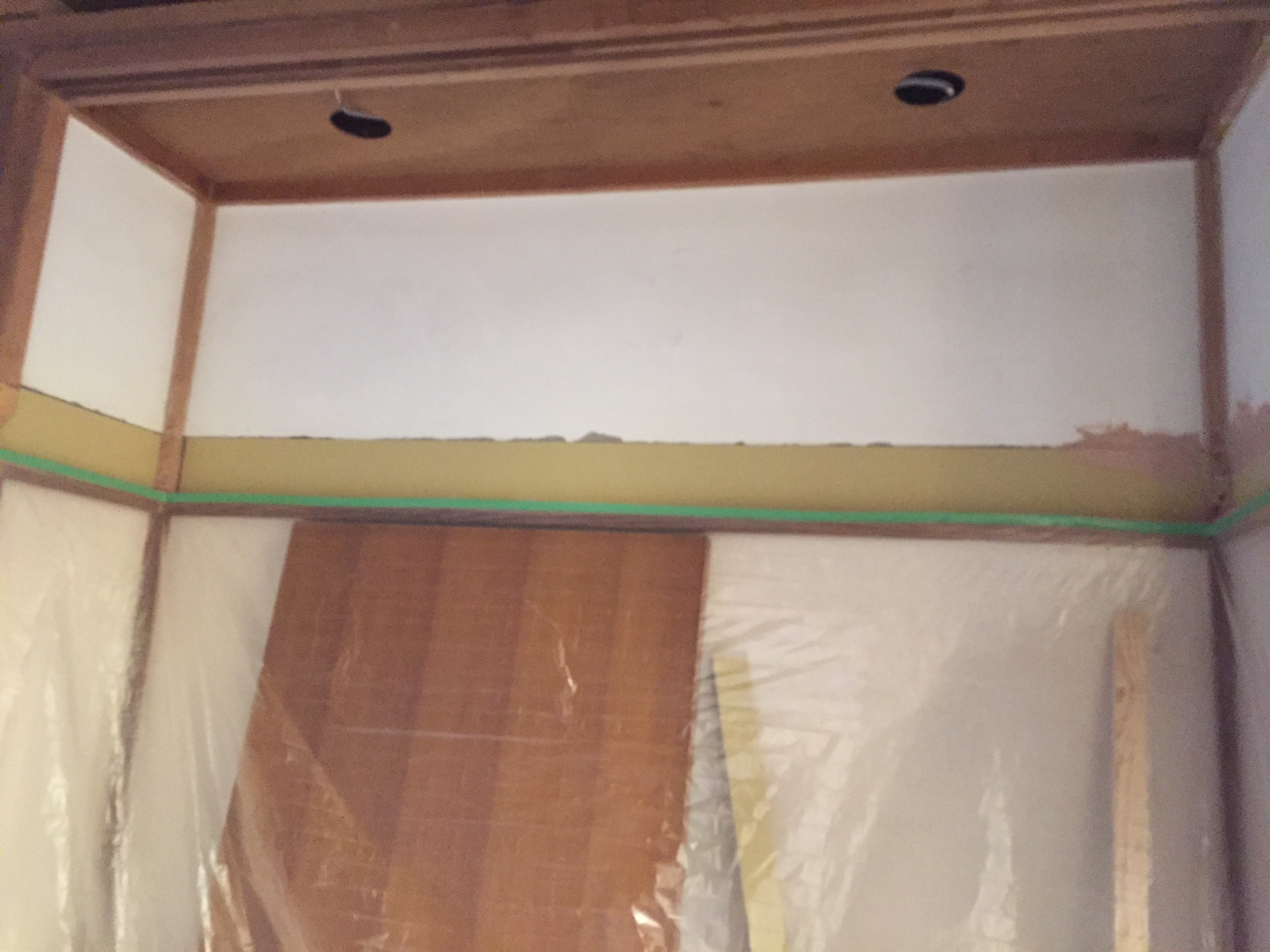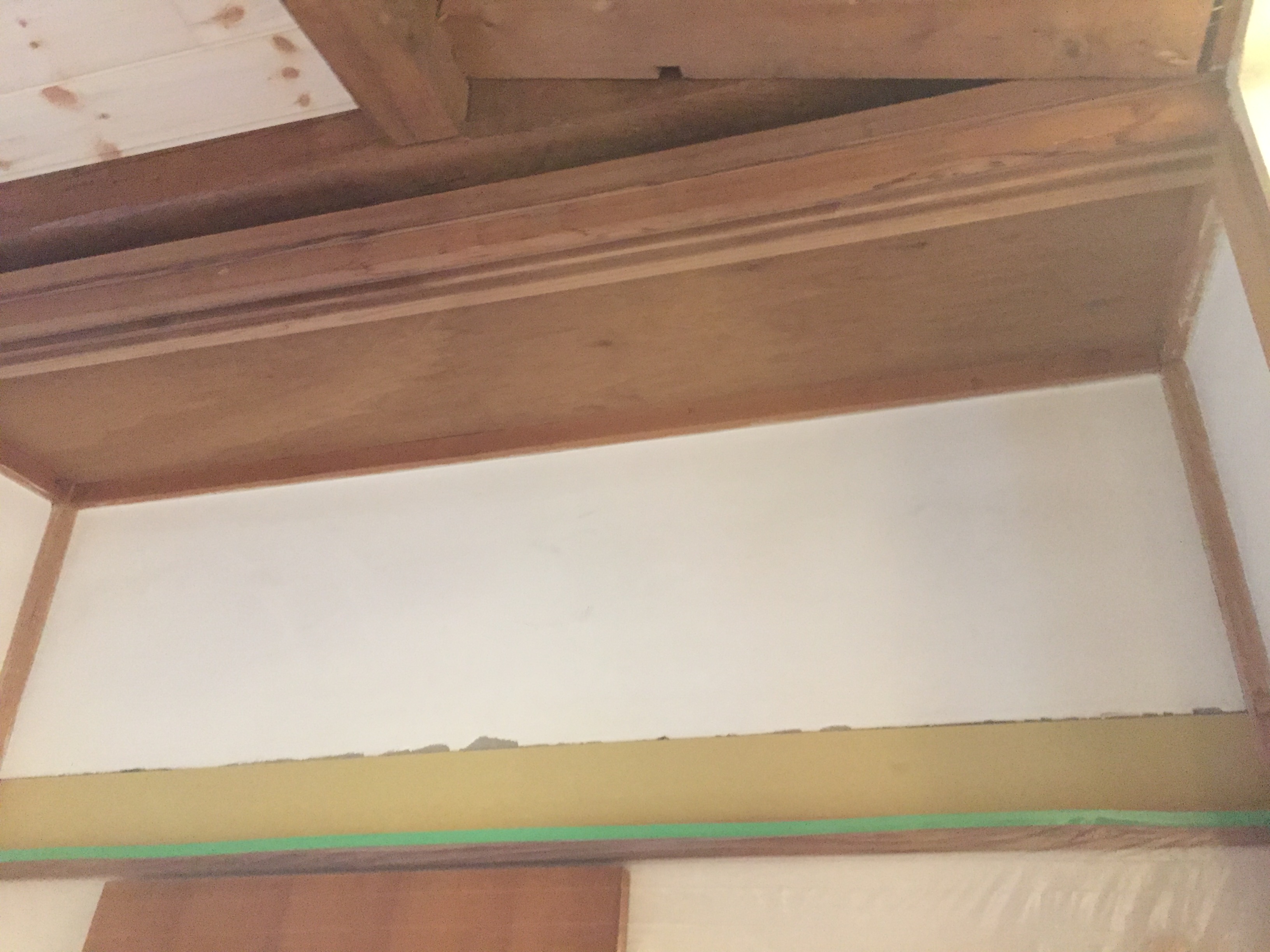 床の間は資材置き場だったので、資材に粉塵が被らないよう養生。