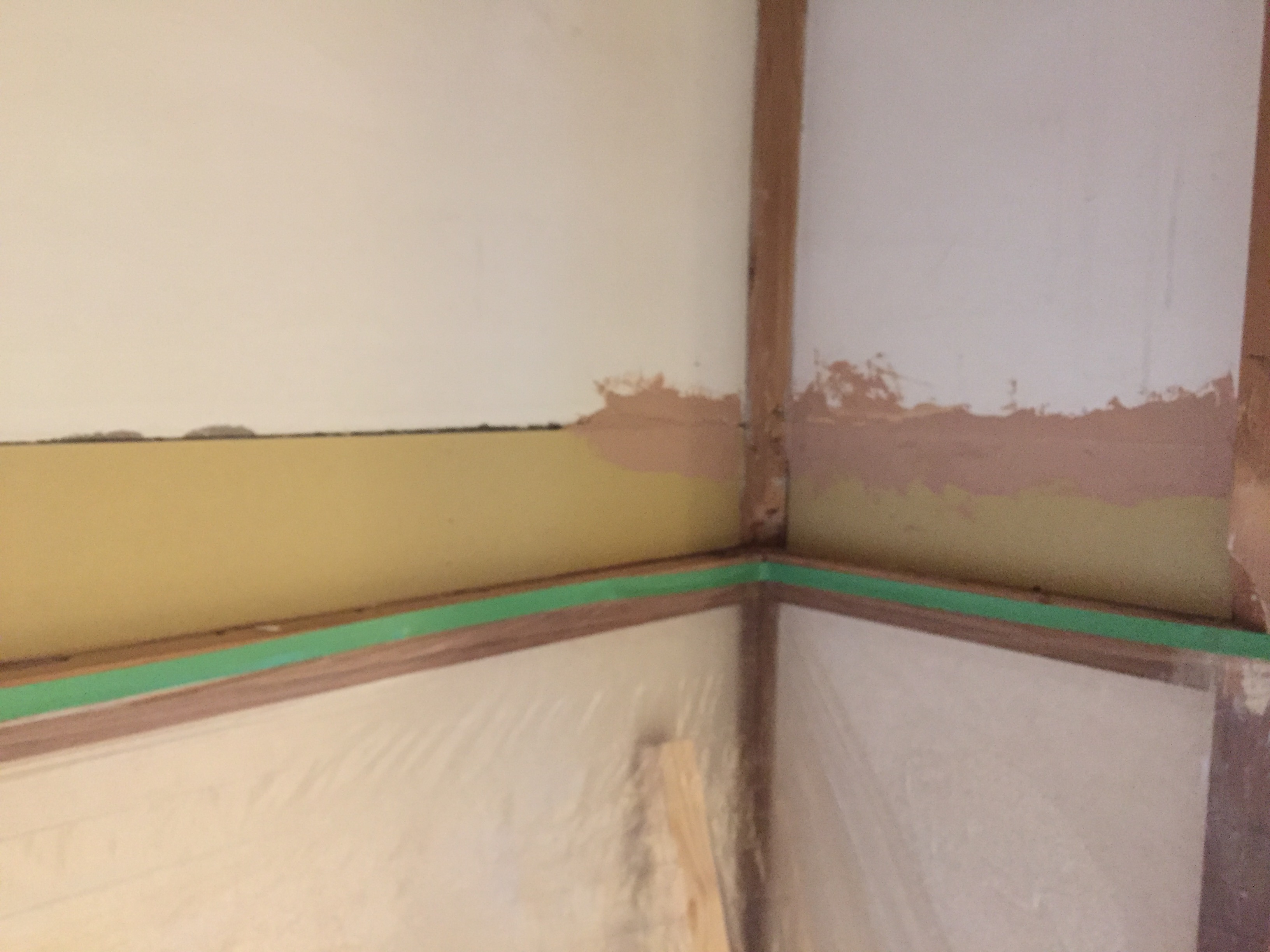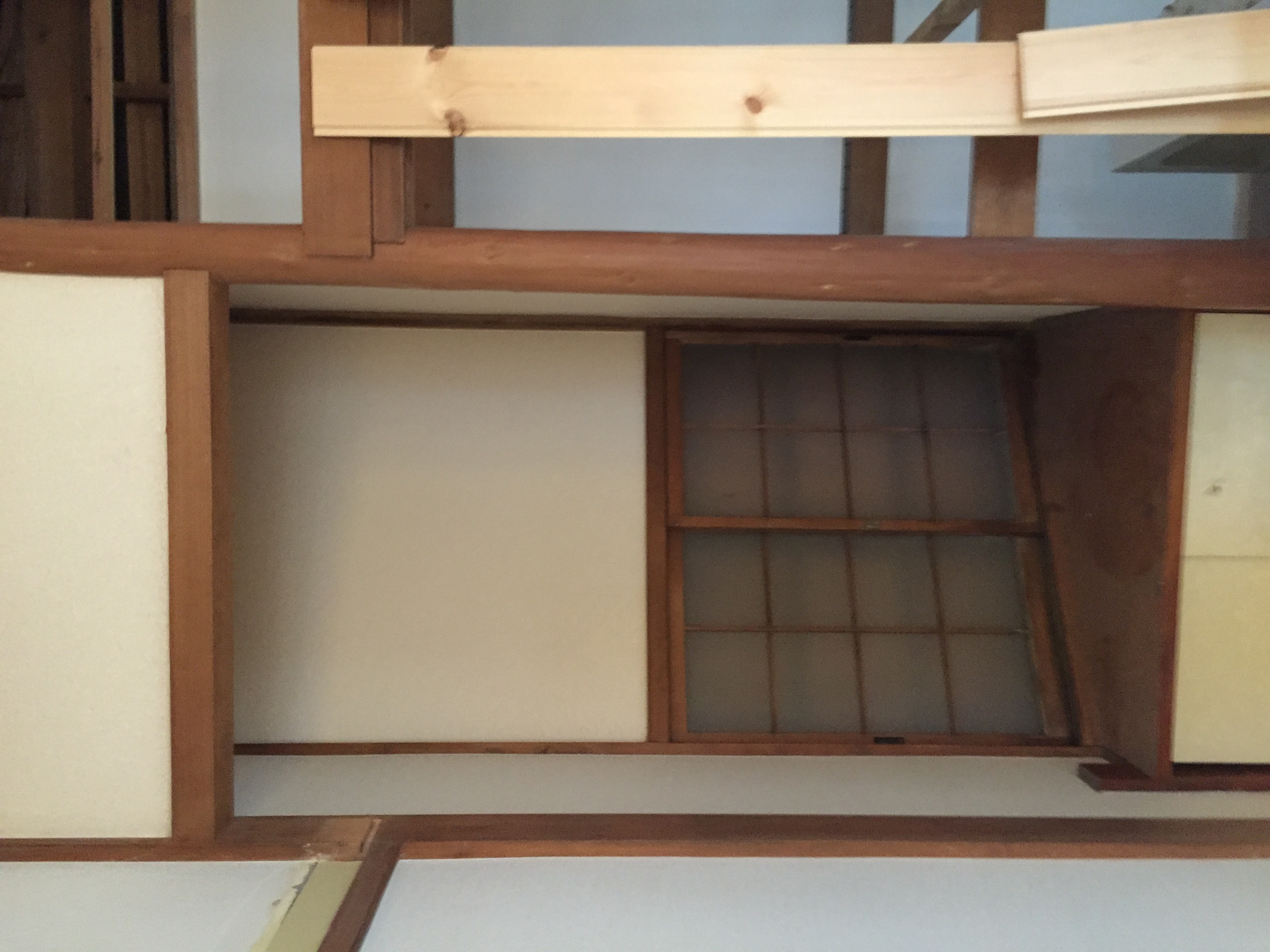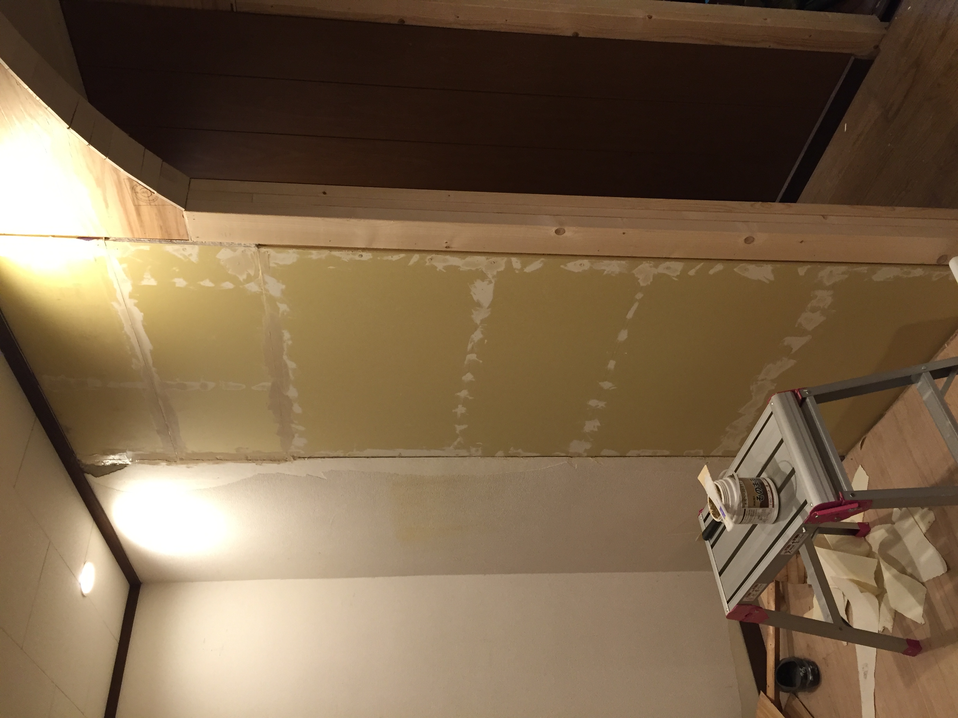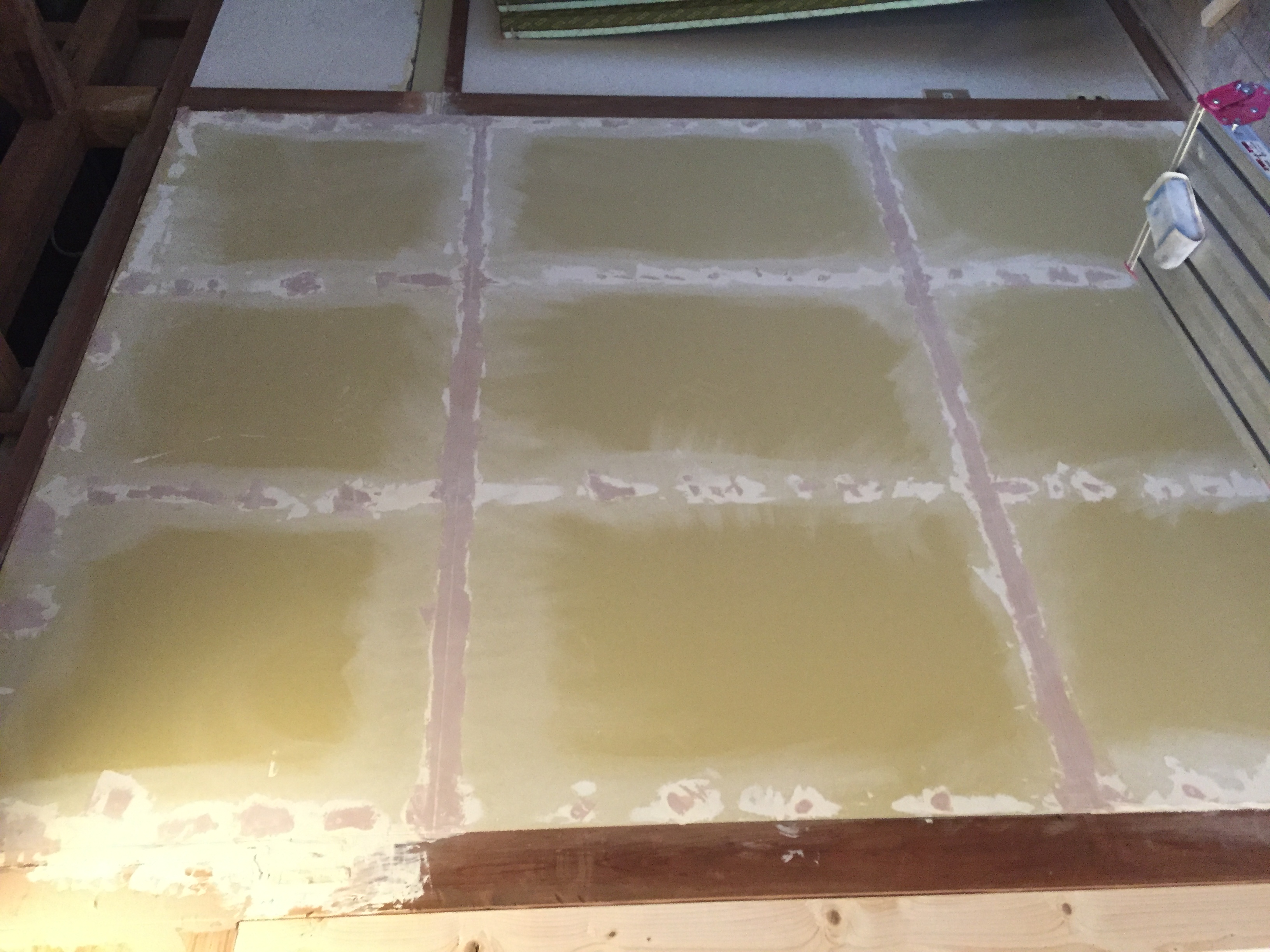 床の間は資材置き場だったので、資材に粉塵が被らないよう養生。