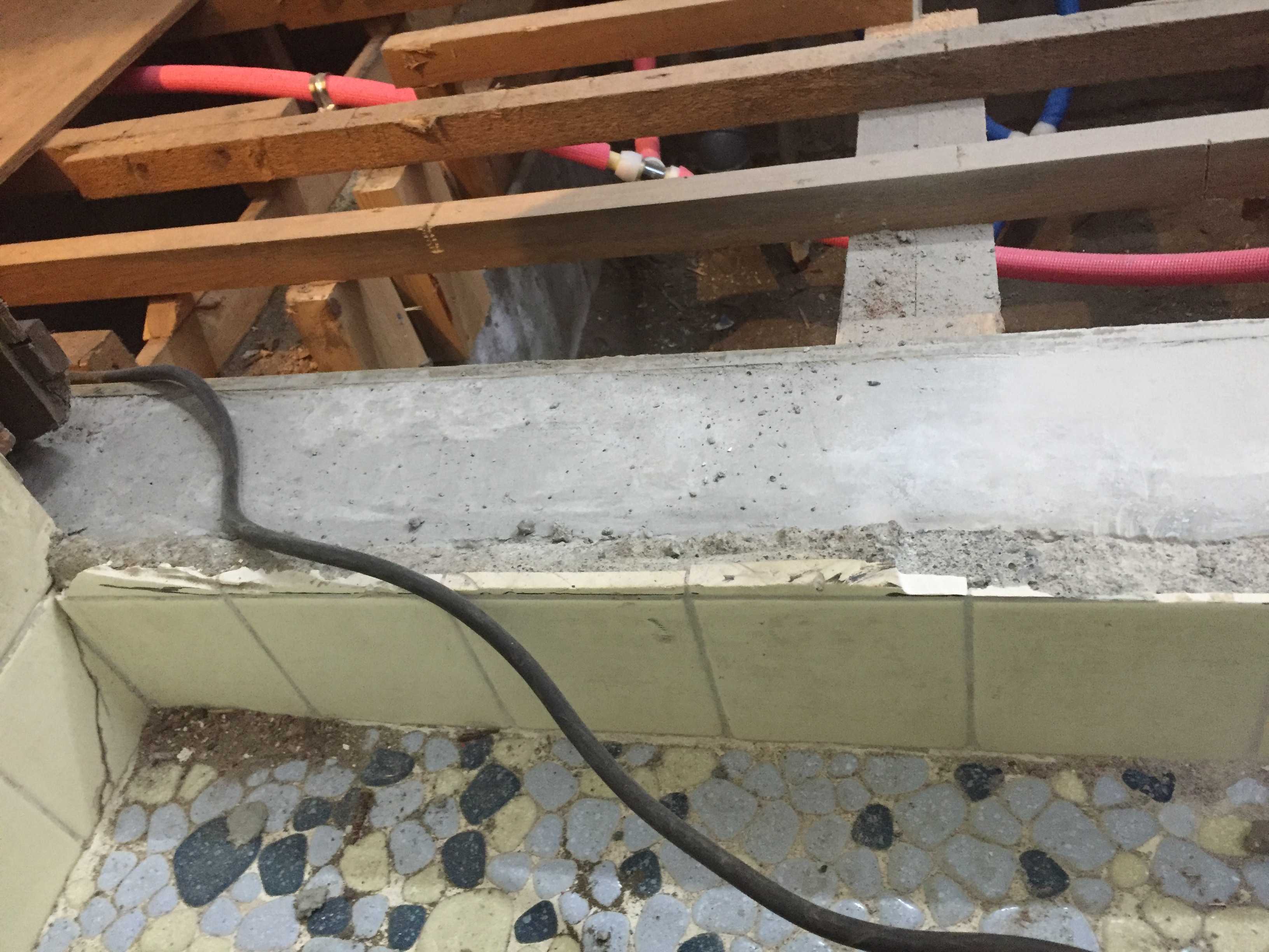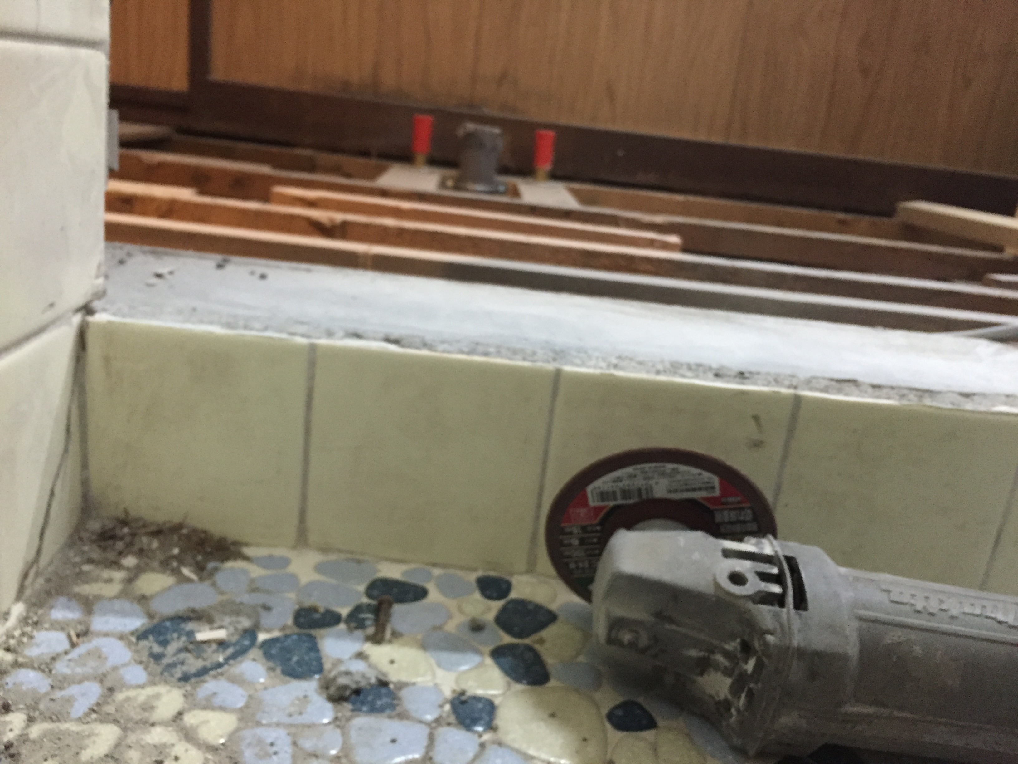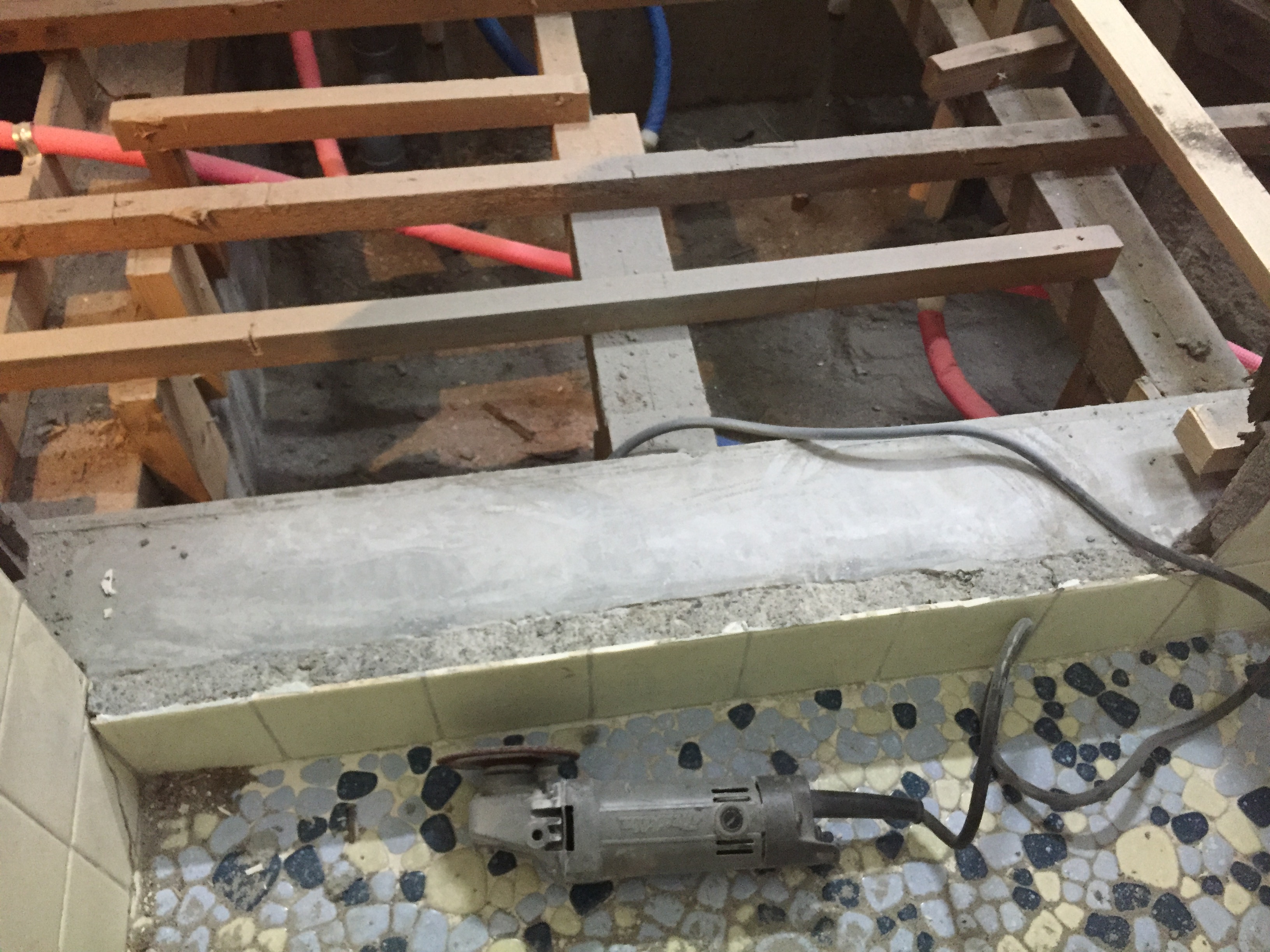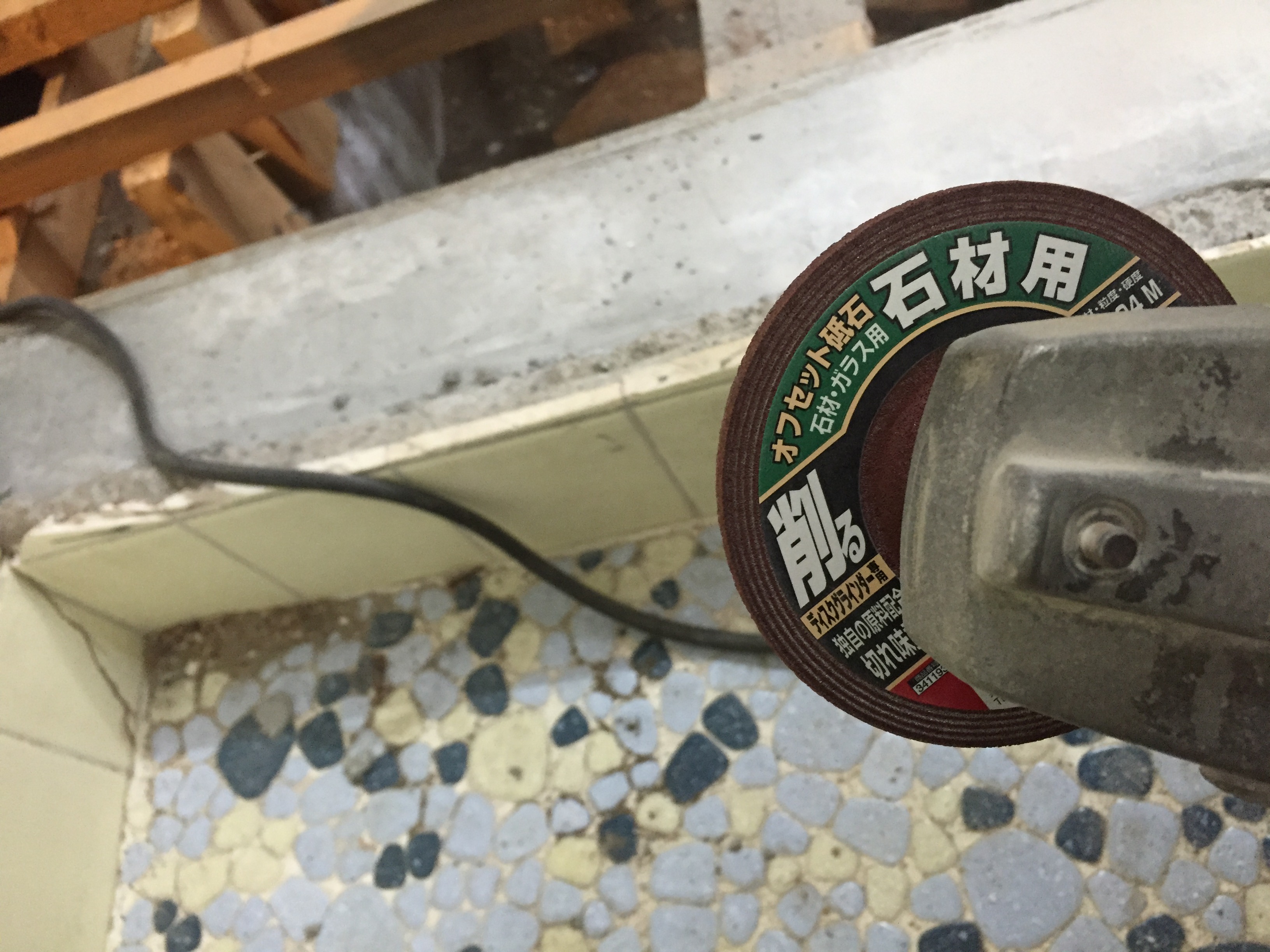 大工さんにコンクリートで埋めてもらった面に合わせてグラインダーで削っていきました!