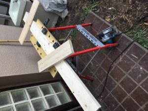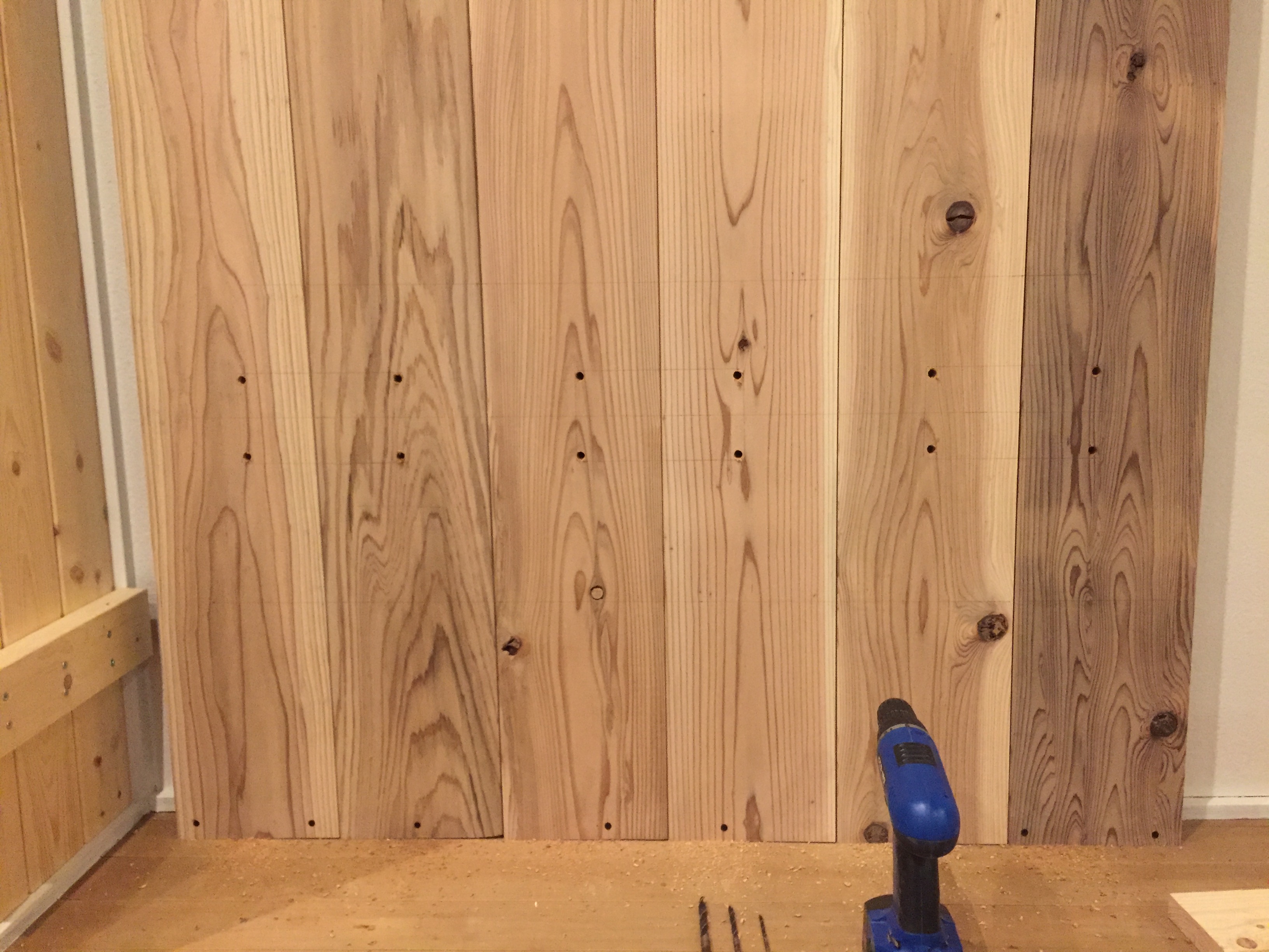 ネジを打ち込む際に安定するよう、真ん中を端材で支えます。