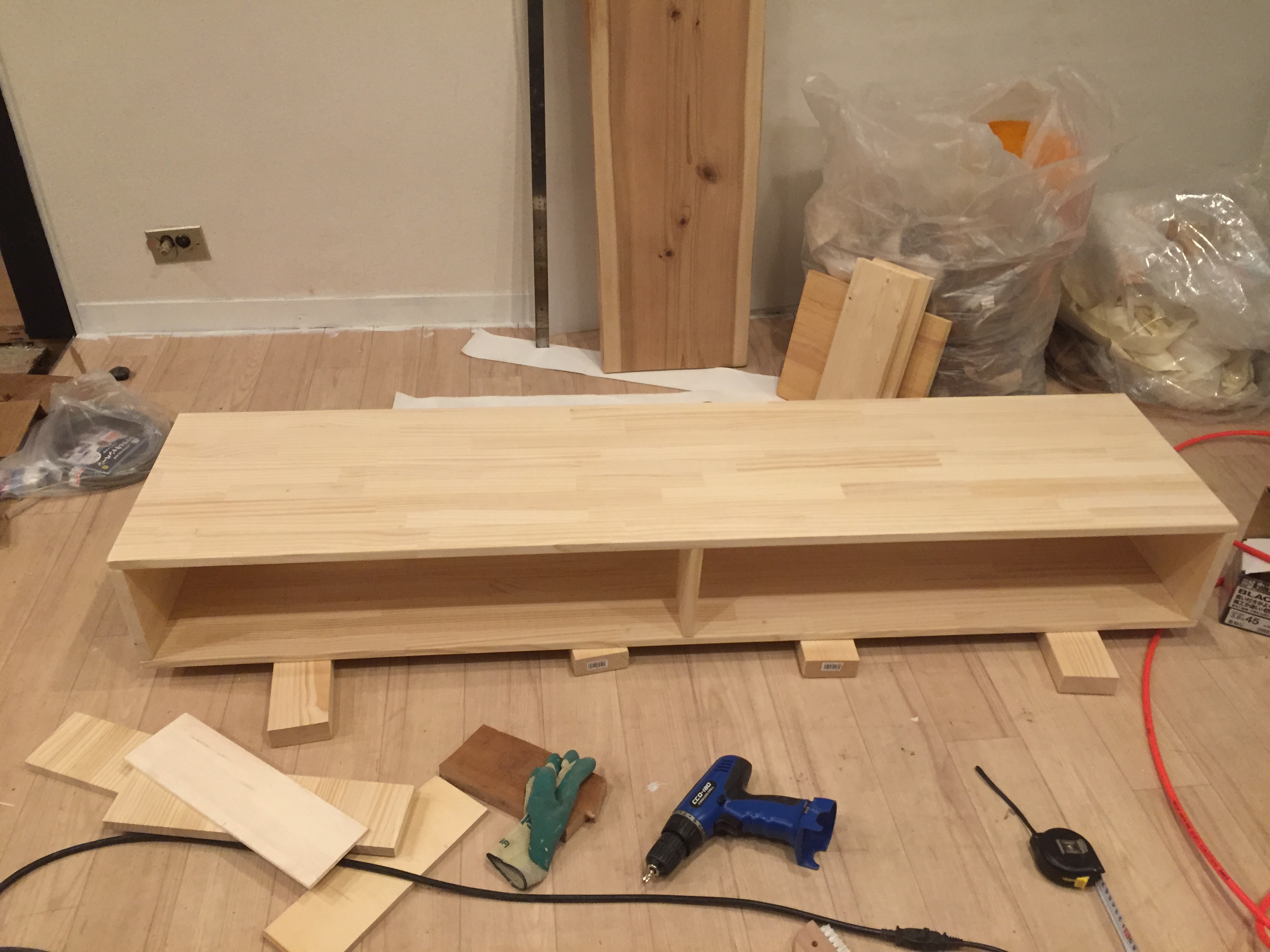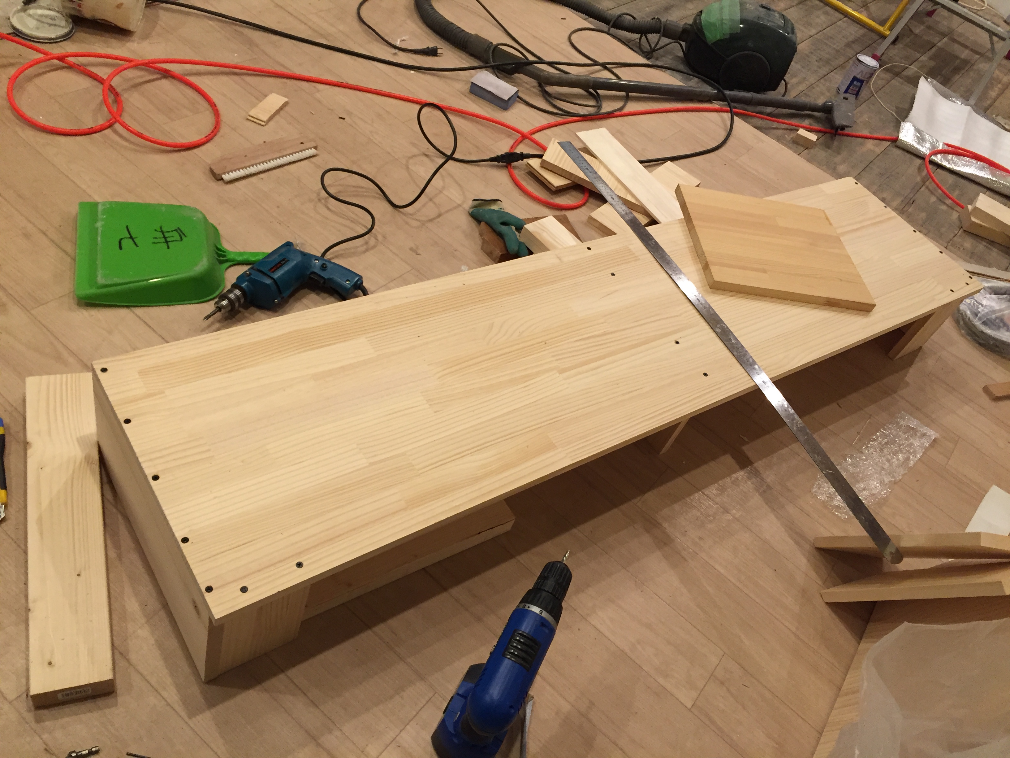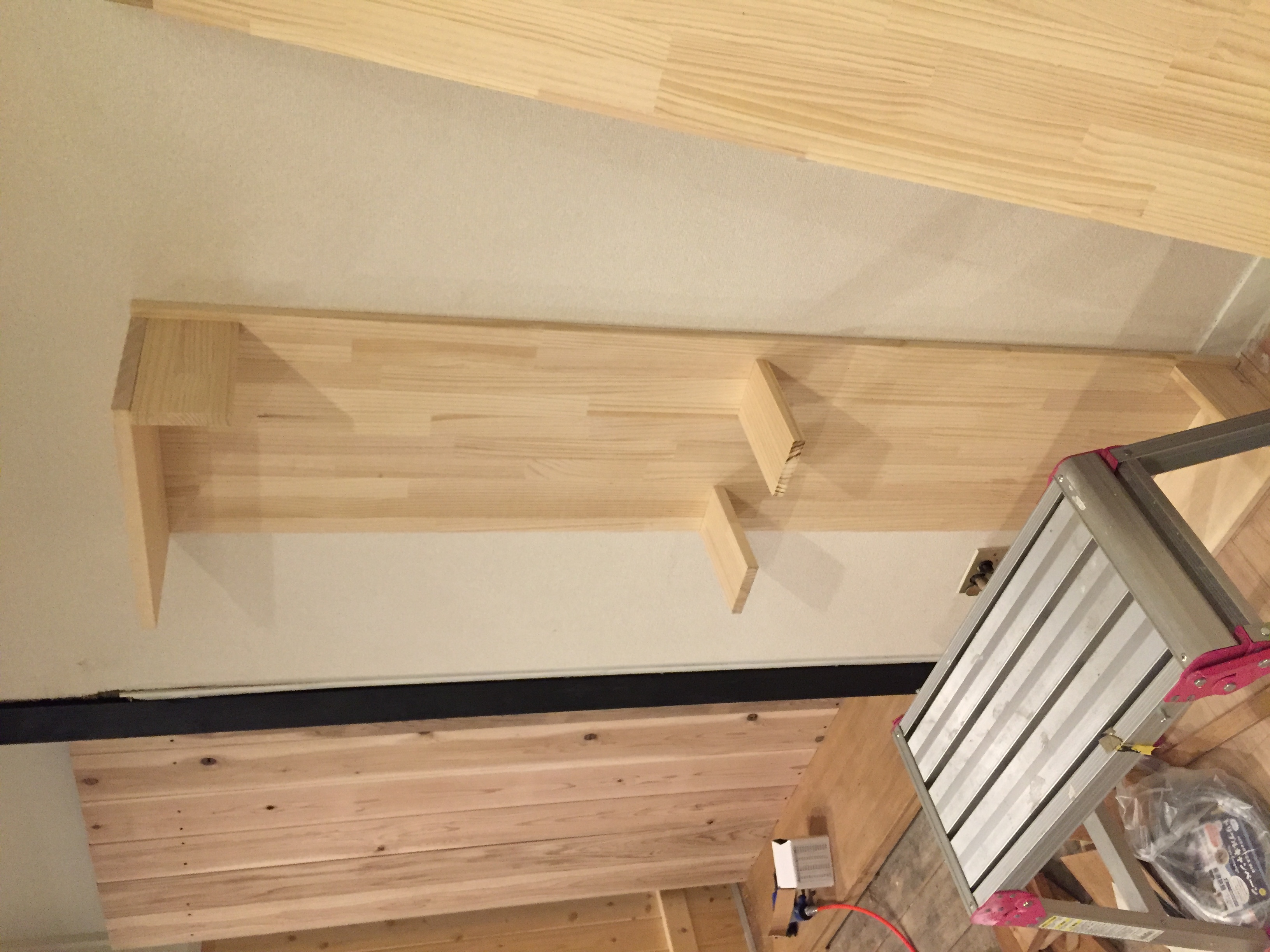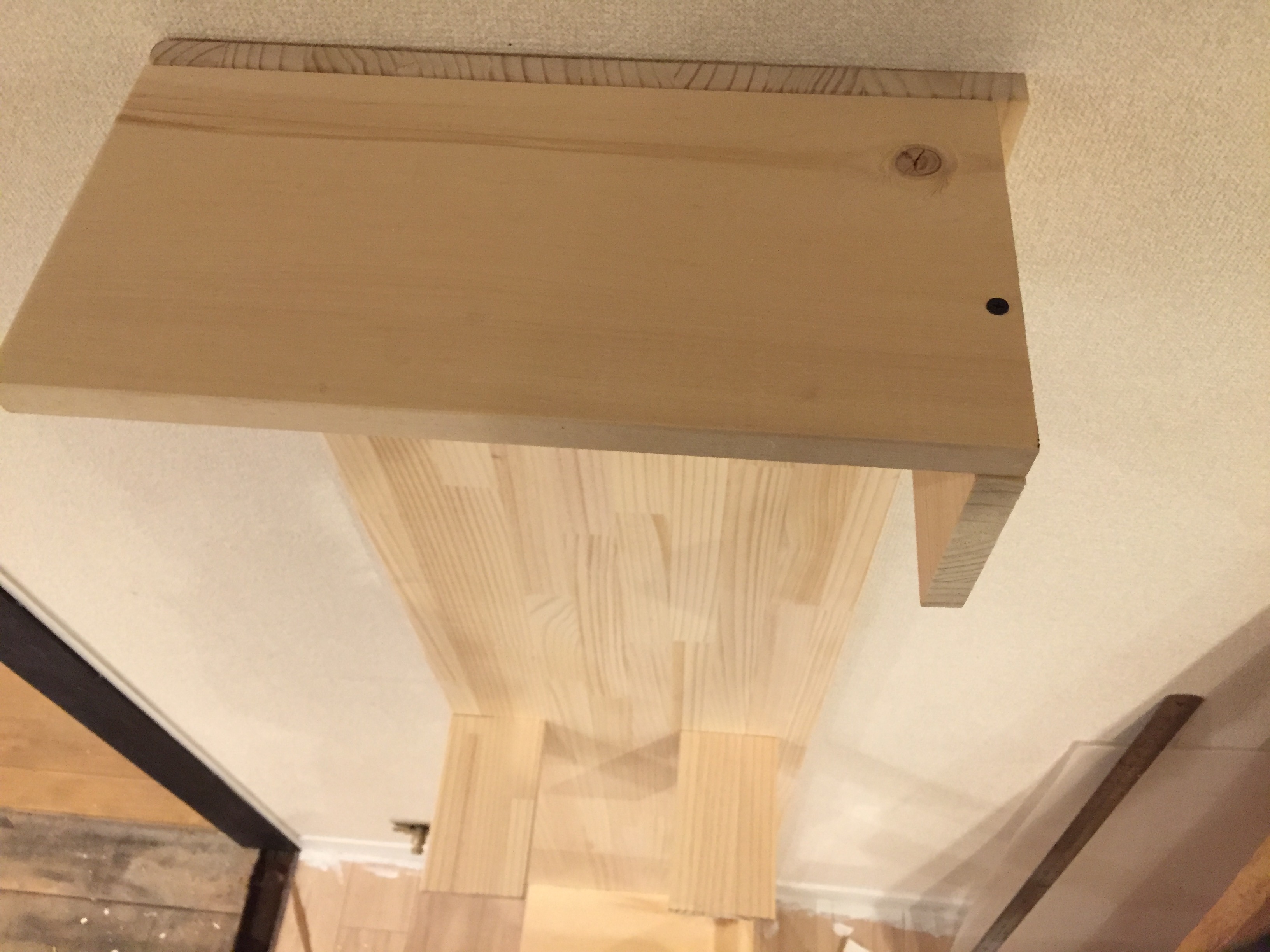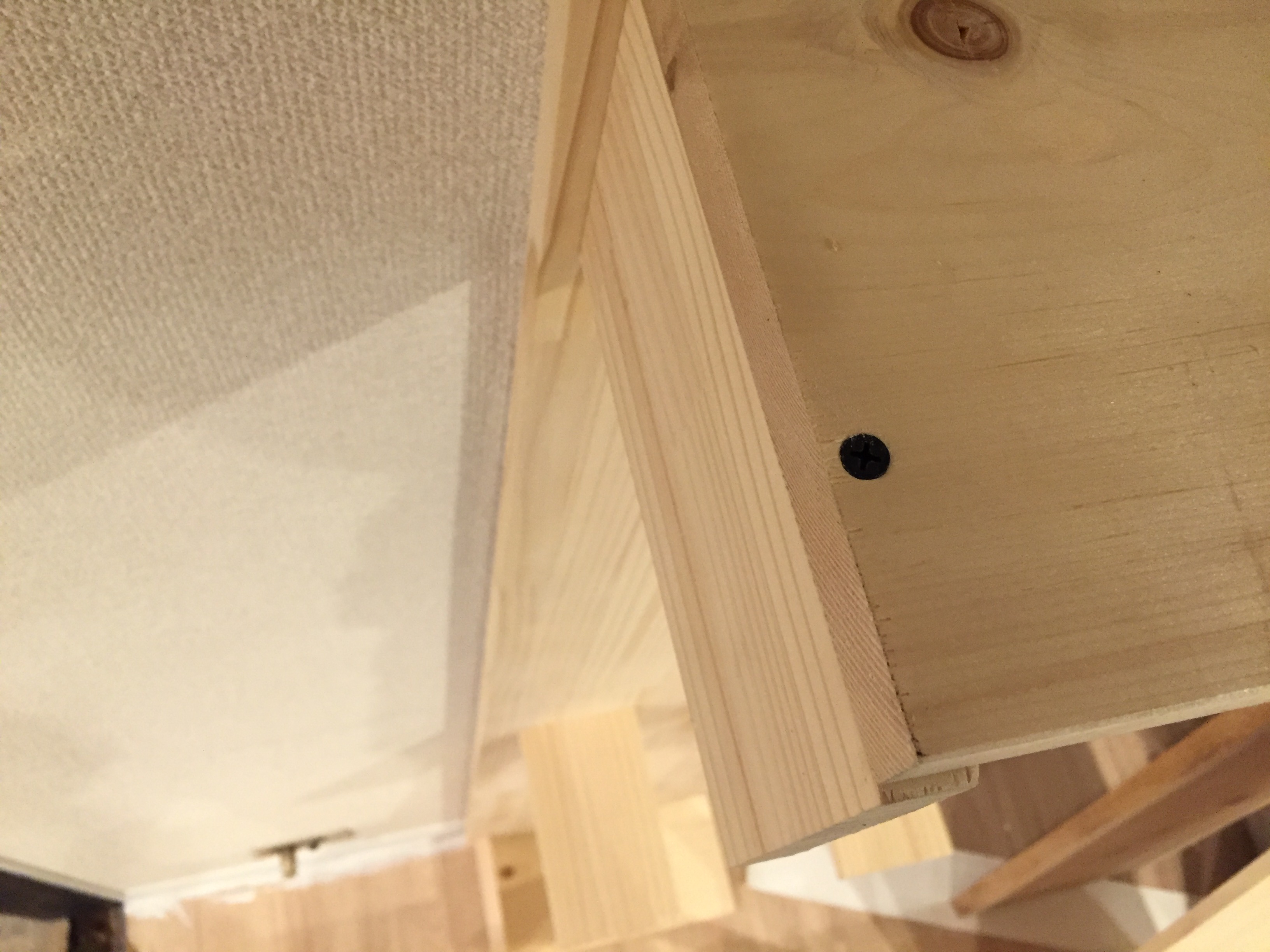 棚板は両サイドに天板の奥行に合わせた材を打ち付け、上にのせている形です。