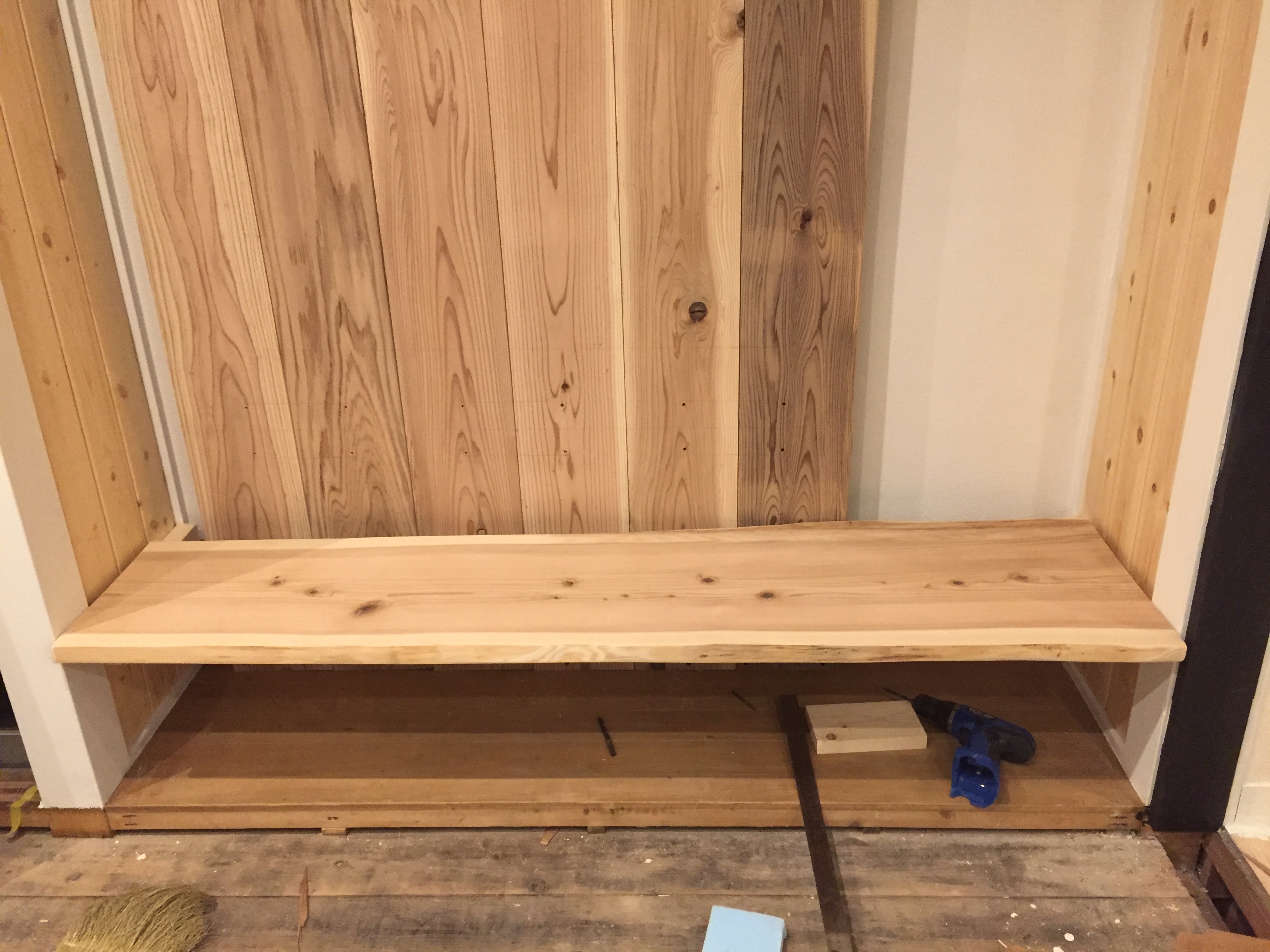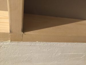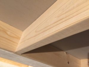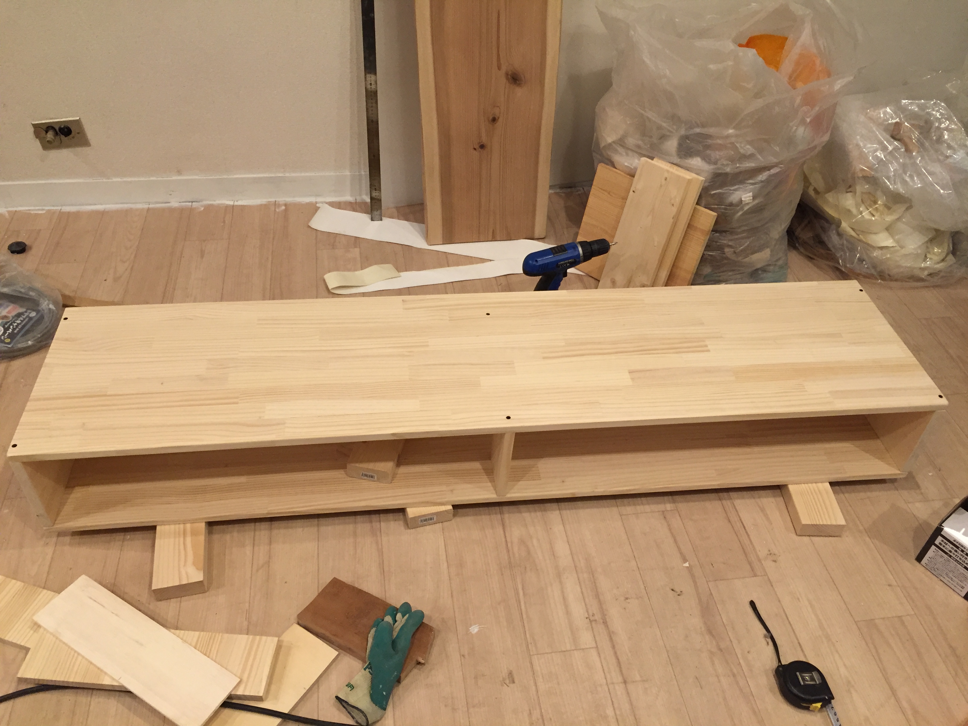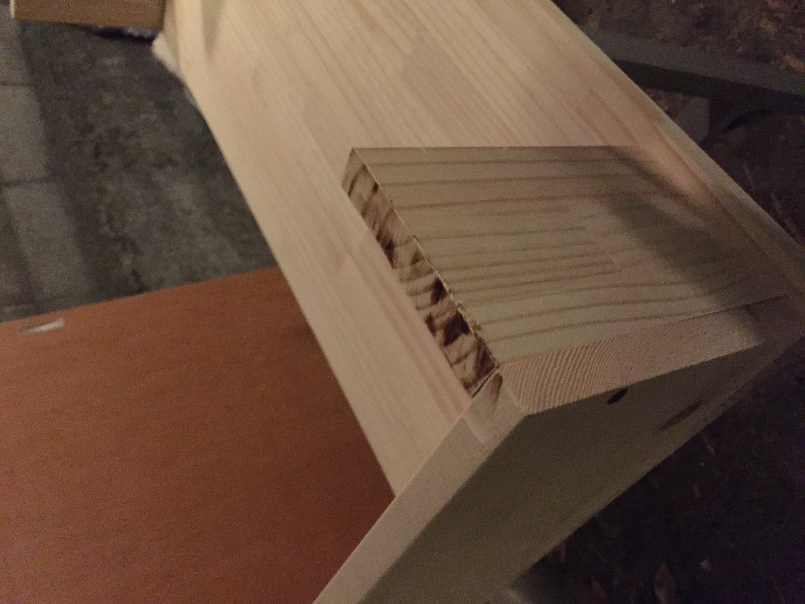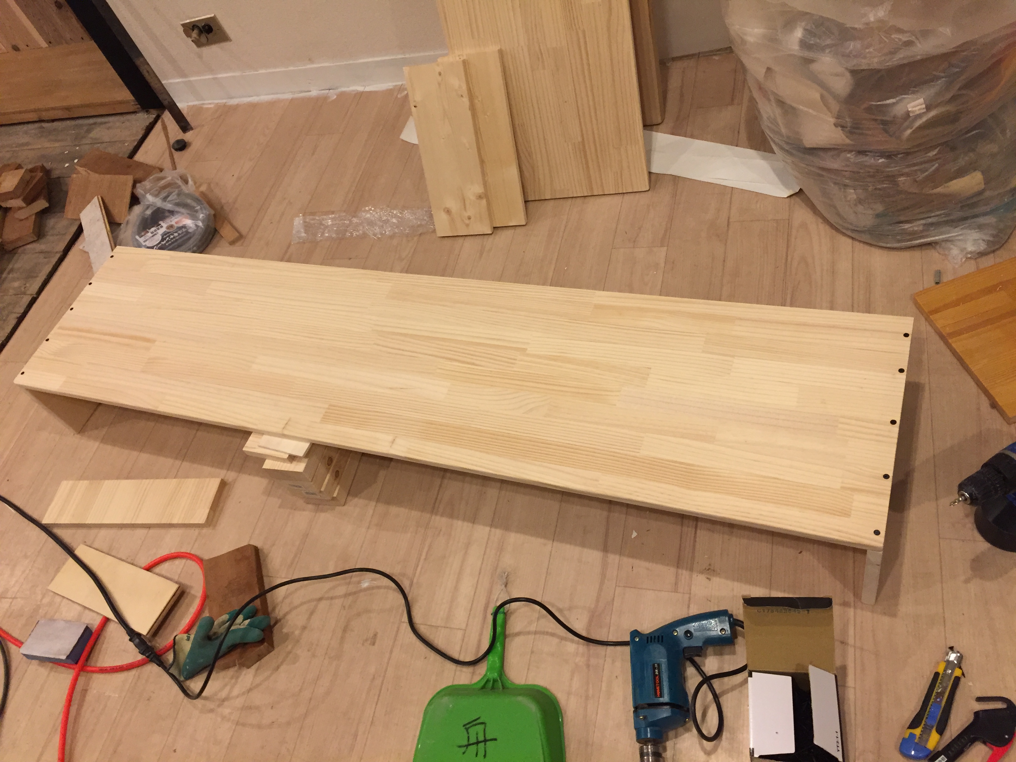 棚板は両サイドに天板の奥行に合わせた材を打ち付け、上にのせている形です。