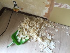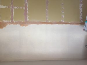 いよいよ年越しも近くなってきたこの日は洋室ドアがあった部分のサイド、壁紙をスクレーパーを使って剥がし作業です。