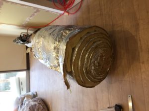 断熱材の挿入が完了したのち、この材を本来の用途に加工。