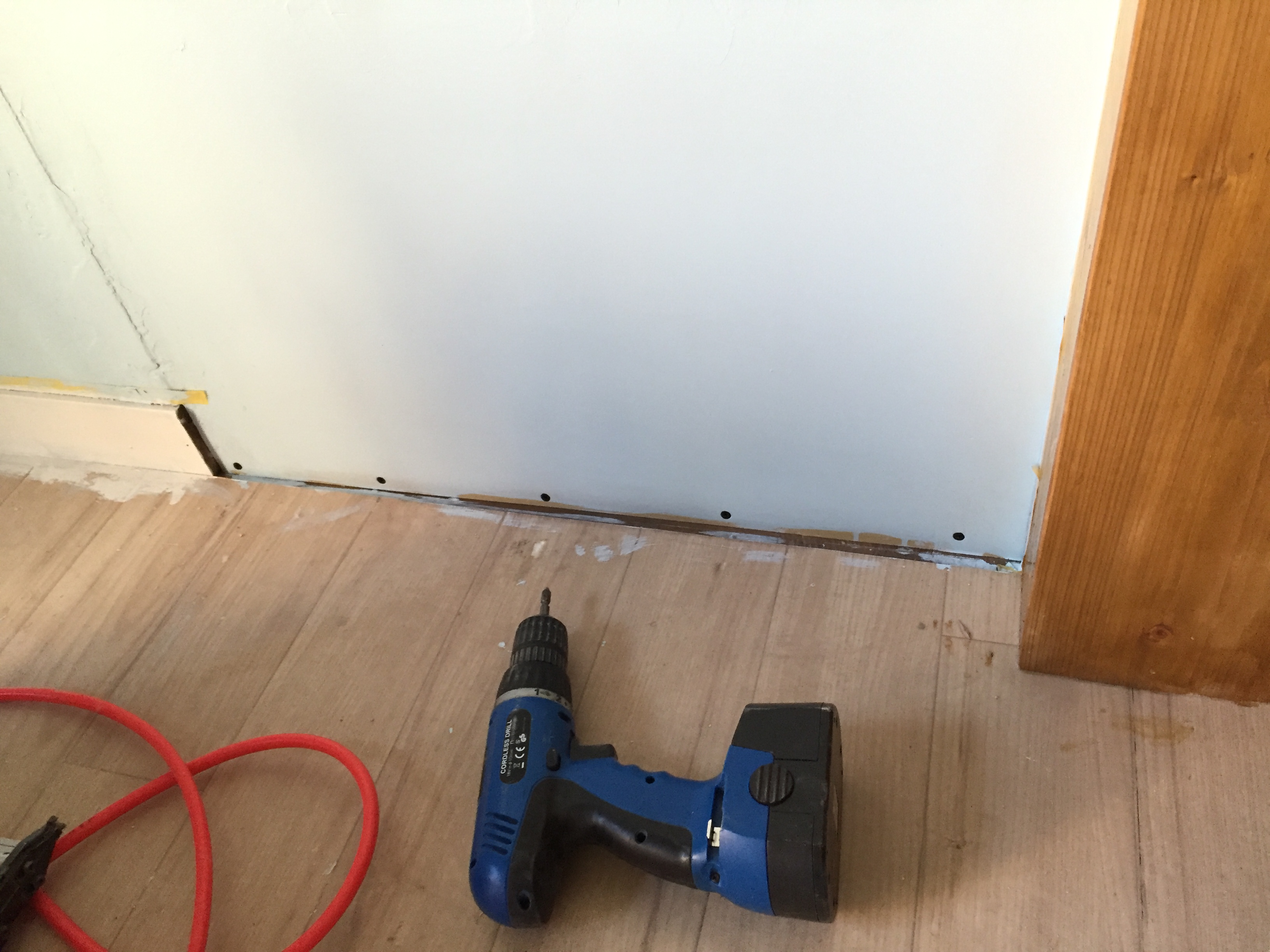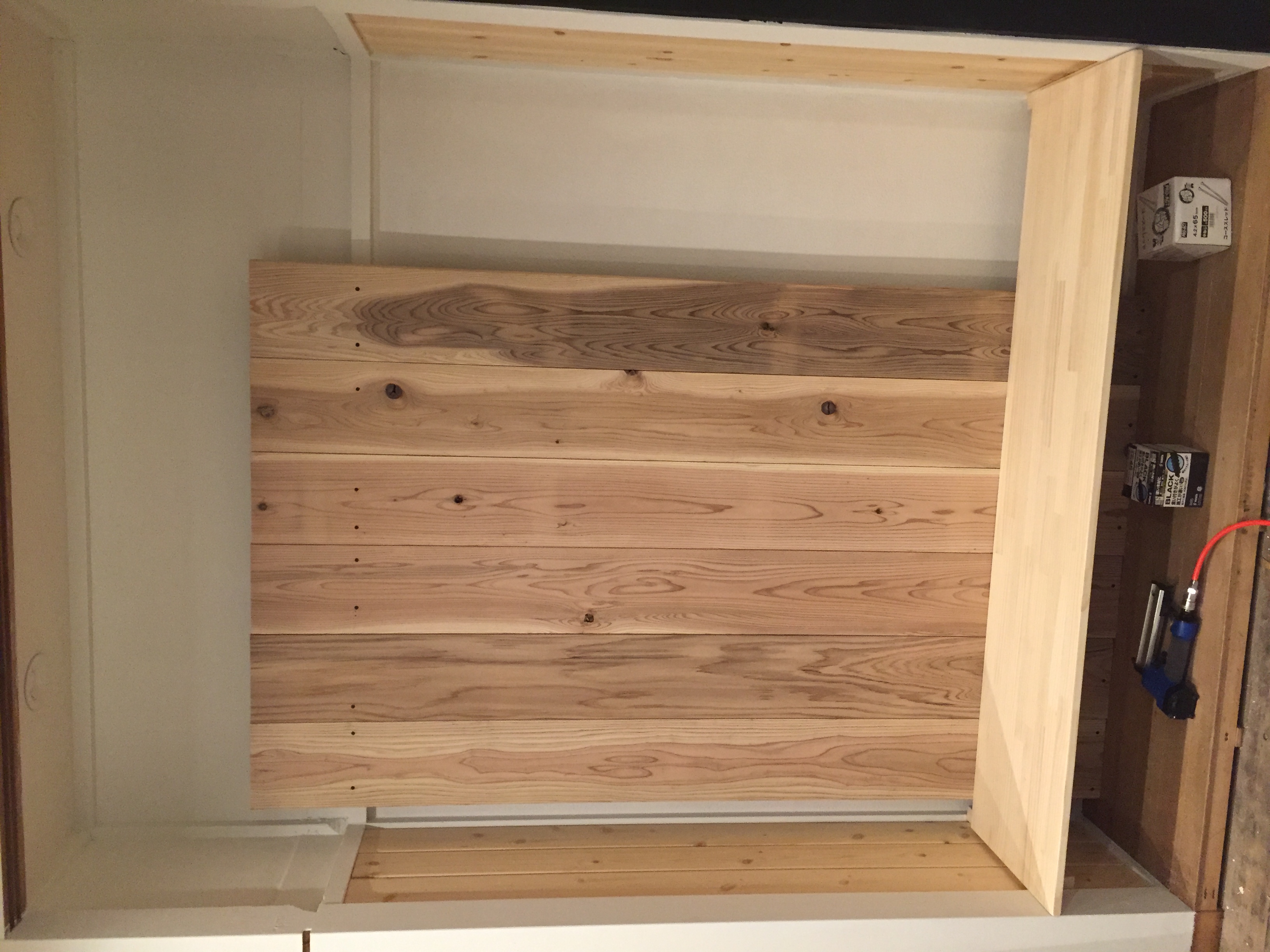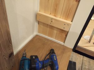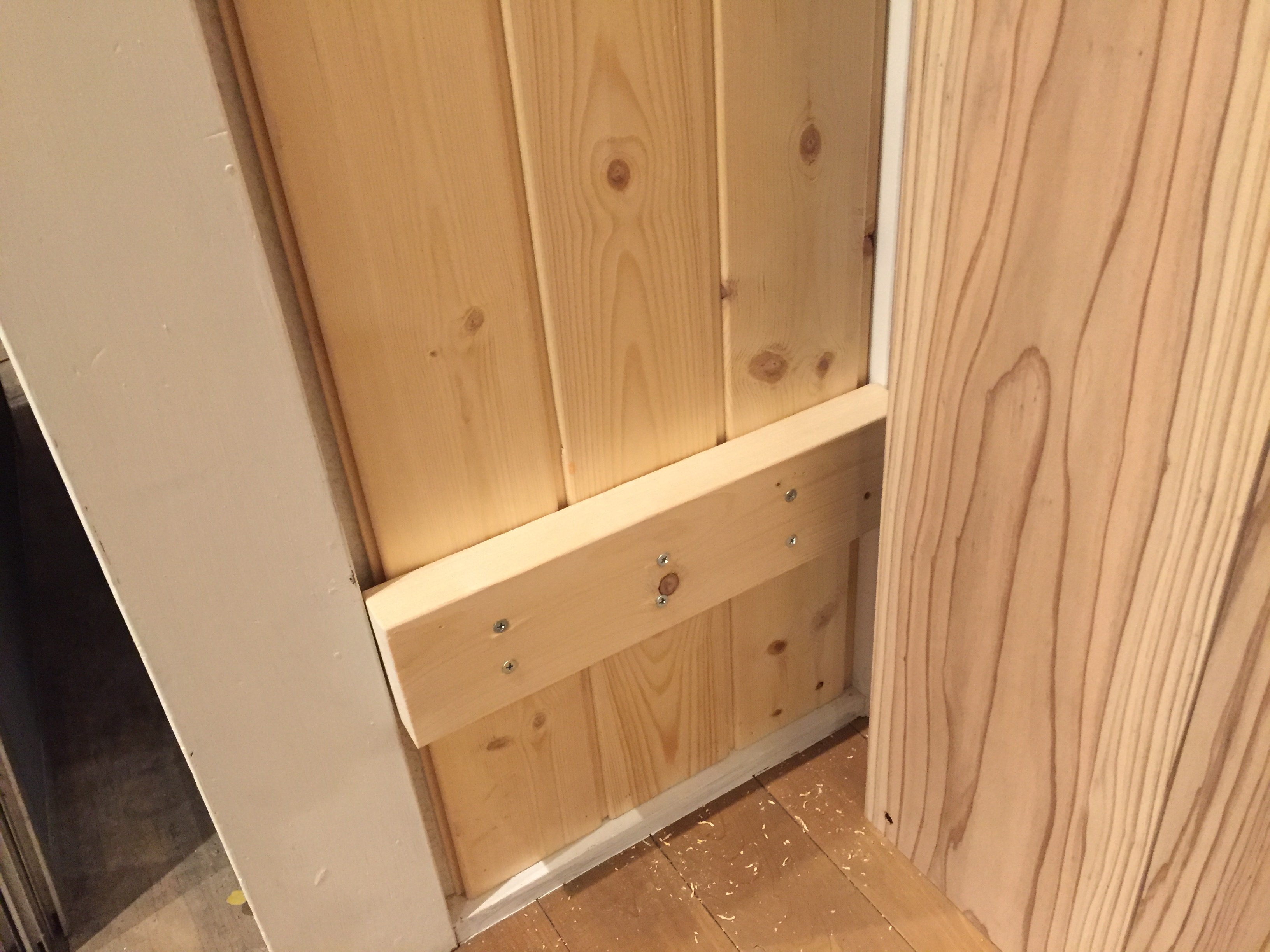 もともとドアがあった場所なので下部に梁など無く、自分でSPF材をカットして固定しました。
