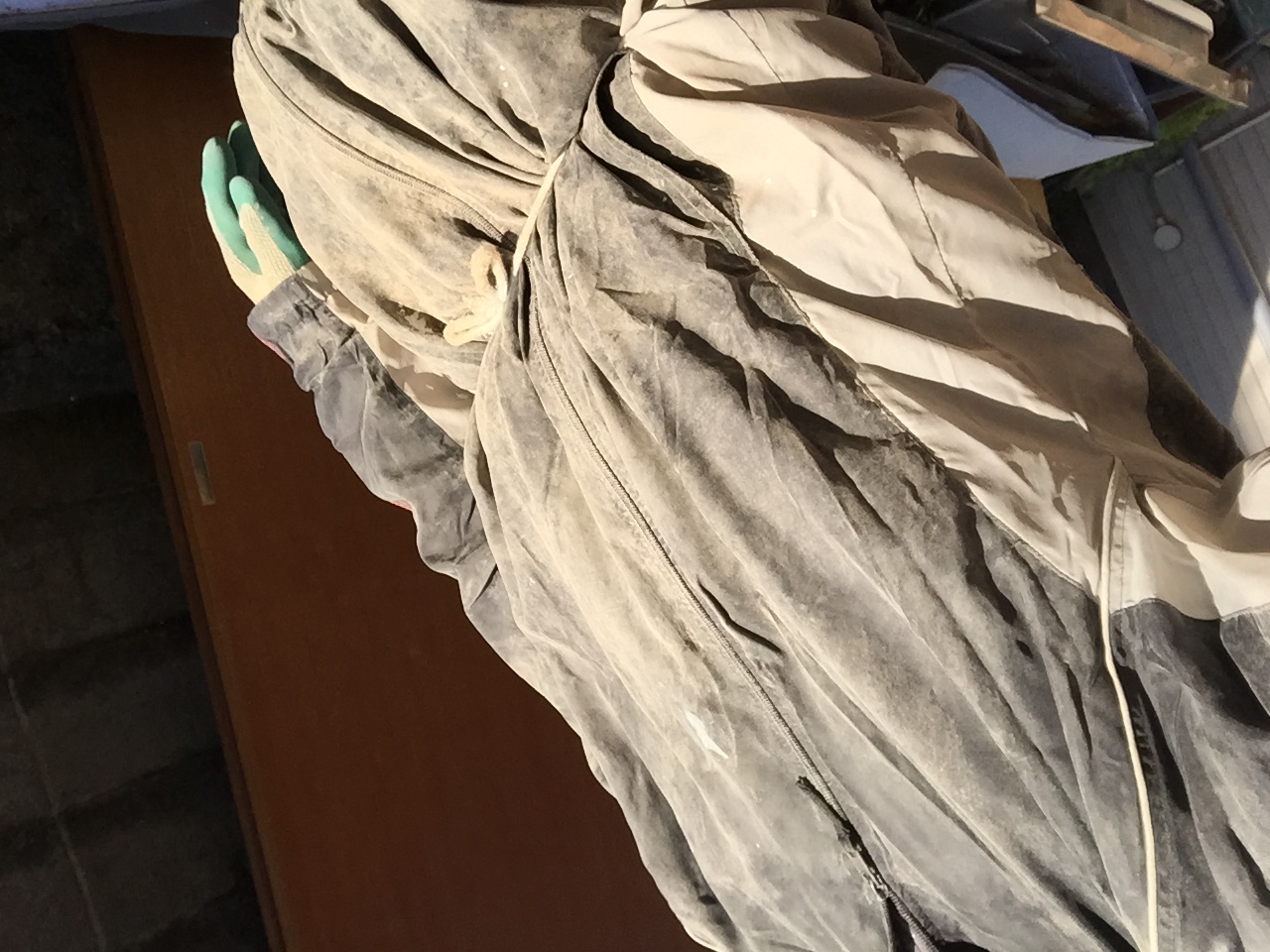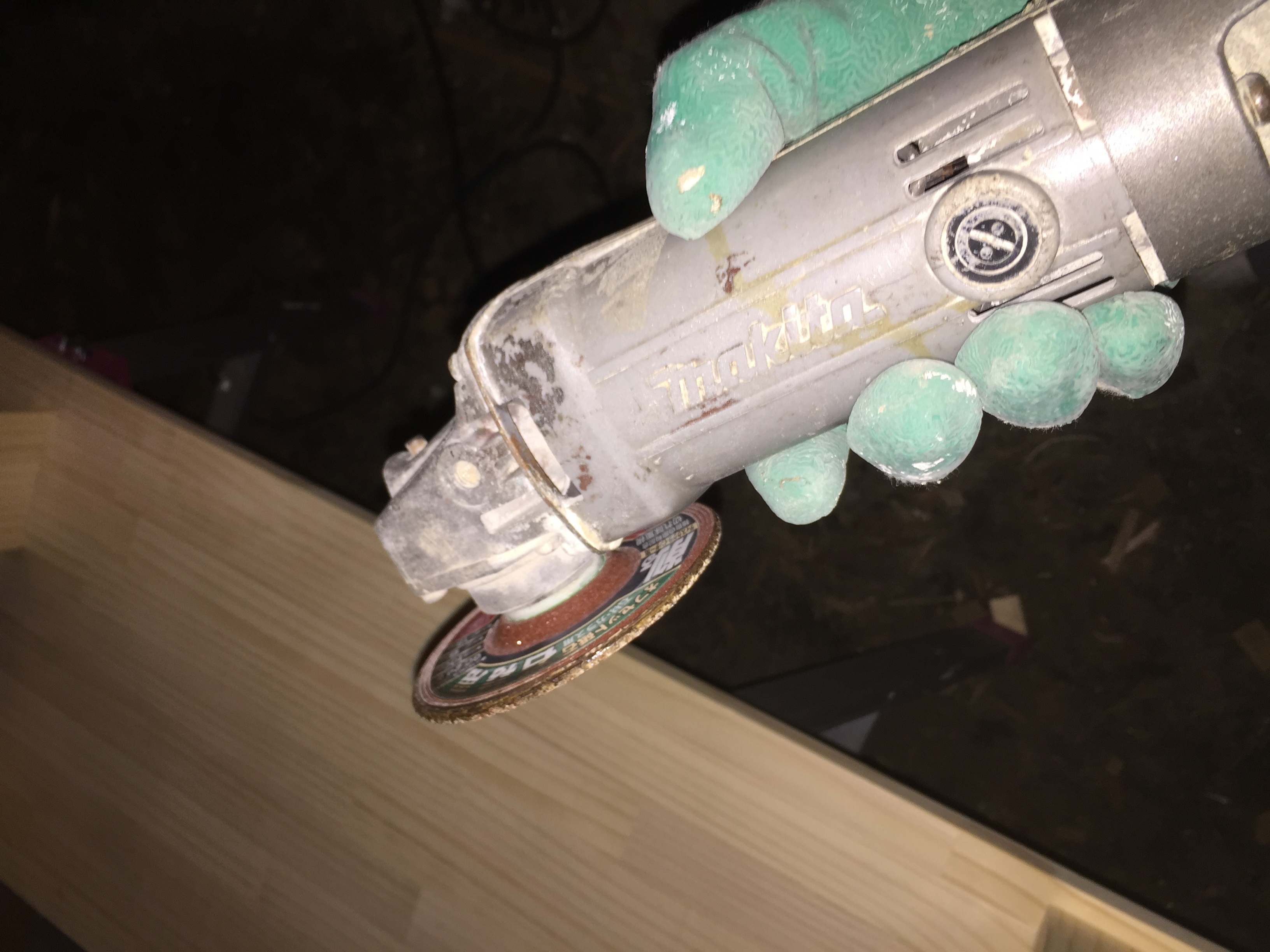 サンダーでの加工は粉まみれになるので作業着&マスク必須、できれば帽子も。