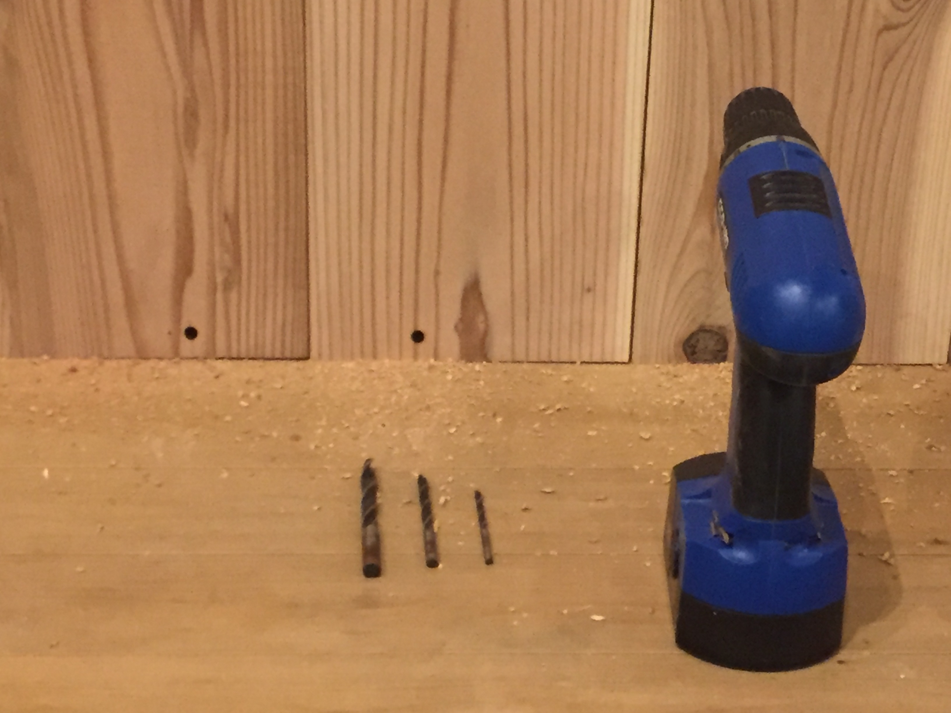 材料が4cmほどの厚みだったのでドリルの歯も細くから徐々に太くし、三段階で穴あけ。