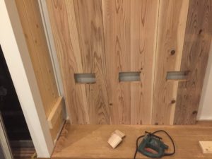 玄関にも電源が欲しかったのでボックスを作り配線を分けて組み込みました。